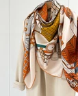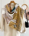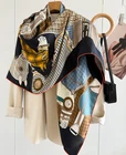 $ 15.3119 Momme Twill Silk Hualuo Scarf 106X106cm Square Shawl feather Print Bandana