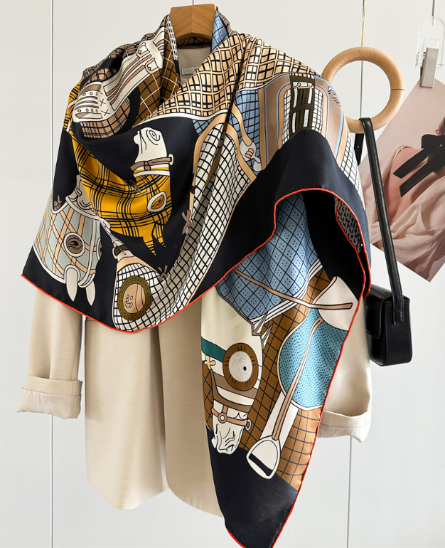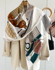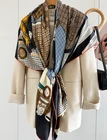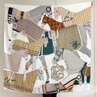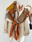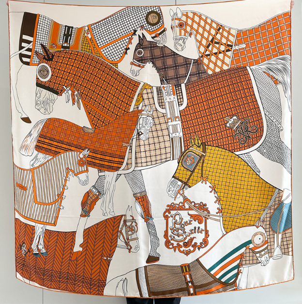 70% Cashmere 30% Silk Scarf Double Face Bandana horse Print 65X65cm Shawl new