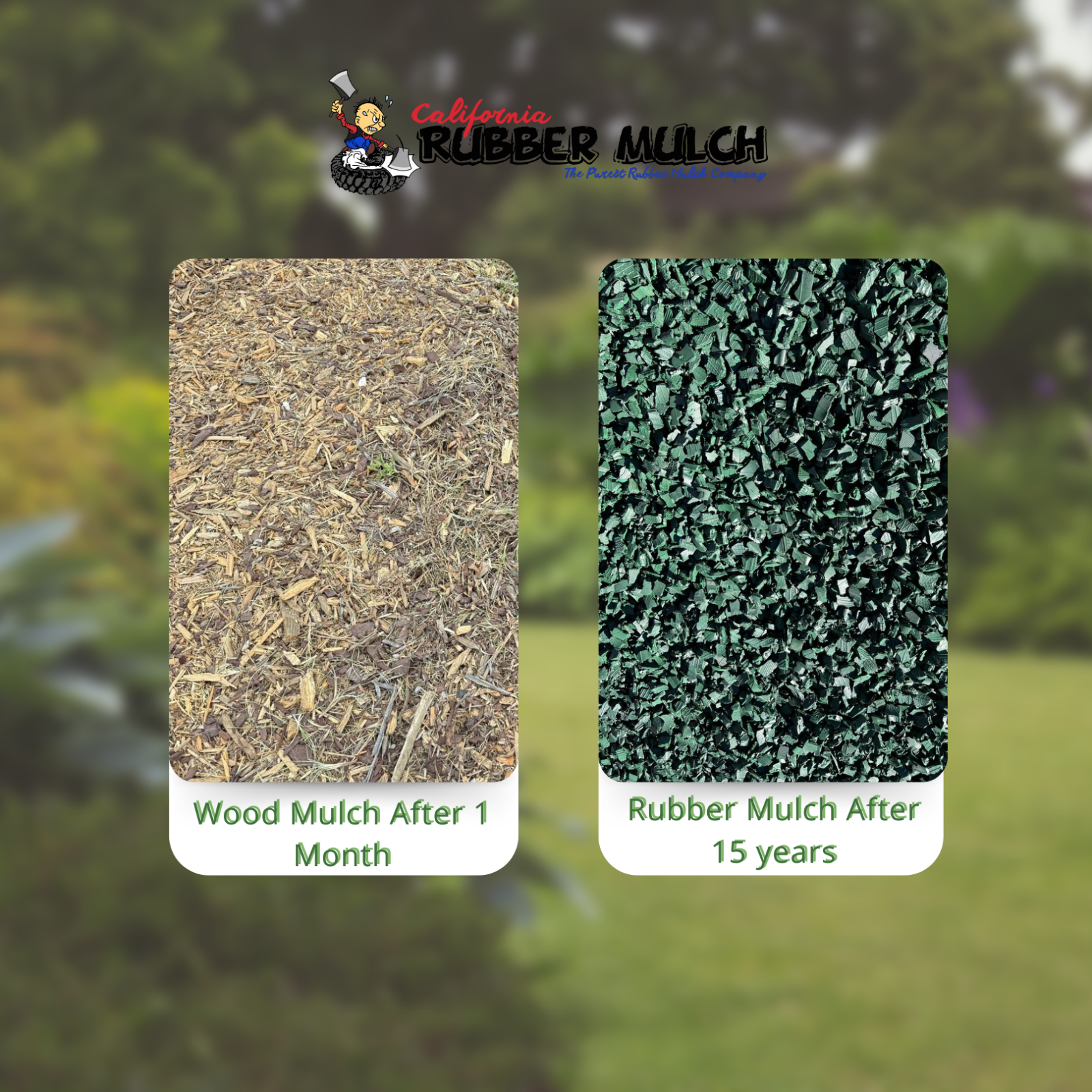 Discover the Superior Quality of Our 100% Wire-Free Rubber Mulch Tired of dusty, metal-filled rubber mulch that doesn’t deliver what it promises? We offer the only rubber mulch on the market that is truly 100% wire-free, guaranteed. ✅ Made Exclusively from Tire Sidewalls Unlike other brands that grind entire tires, creating dusty mulch mixed with sharp wire remnants, we carefully select only the sidewalls — ensuring a clean, safe, and durable product. ✅ Larger Pieces, Better Coverage Our large, vibrant nuggets cover more surface area with less material. Plus, with no dust or fine debris, you get a cleaner, more attractive landscape or playground. ✅ Lasts 18–20 Years Our rubber mulch is engineered to maintain its bright colors and strong structure for up to two decades — making it a smart, long-term investment. ✅ Safe for Children and Pets With absolutely no sharp wires, our mulch is perfect for playgrounds, schools, dog parks, and backyards. It stays in place even in high winds, creating a safe, worry-free environment. ✅ Better Than Wood Mulch Say goodbye to mulch that rots, blows away, or needs replacement every year. Our rubber mulch resists pests, mold, and weeds — and keeps looking great without constant maintenance. 🌎 Eco-Friendly Commitment By recycling tires into beautiful, long-lasting mulch, we help reduce waste and create safer, cleaner outdoor spaces. Choose quality. Choose safety. Choose lasting beauty. Choose the only 100% Wire-Free Rubber Mulch. 100% Wire-Free – Guaranteed: Our mulch is crafted exclusively from tire sidewalls, ensuring it is completely free of metal wire — unlike others that still contain up to 2% wire per bag. Large Nuggets – No Dust: We don't crush the entire tire like others. Our large, clean pieces cover more area with less product — no dusty mess, just pure, vibrant mulch. 18–20 Years of Durability: Our mulch outlasts others, maintaining its bright colors and structure for nearly two decades. Perfect for playgrounds, landscapes, and gardens. Safe for Pets & Kids: No sharp wires, no toxic materials. 100% safe for playgrounds, backyards, dog runs, and more. Cost-Effective & Eco-Friendly: One-time investment. Unlike wood mulch, it won't rot, blow away, or require constant replacement — saving you time, money, and protecting the environment.