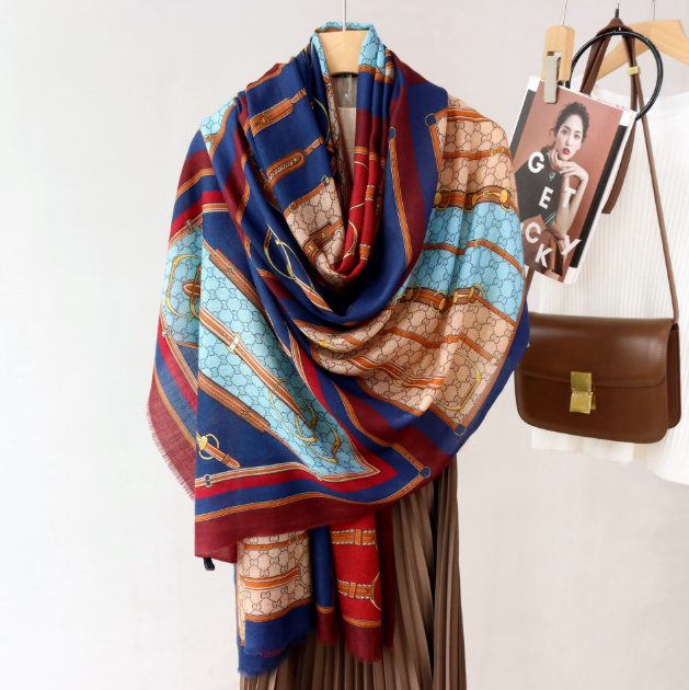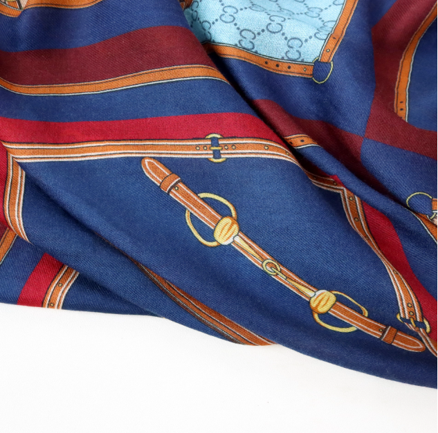 100% Wool Scarf Shawl Bandana Square Blossoms Print Neckerchief 200X100cm Wrap