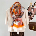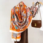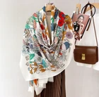 100% Wool Scarf Shawl Square Brown red chain Print Neckerchief 200X100cm Wrap