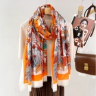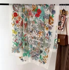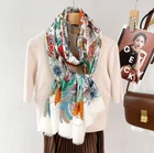$ 30.1100% Wool Scarf Shawl Bandana Square Blossoms Print Neckerchief 200X100cm Wrap