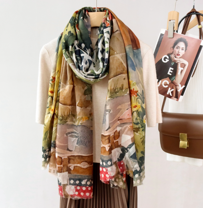 I love my gorgeous silk scarf which is more beautiful than the picture!! Exactly what I wanted and looks perfect with my sweater! I was amazed by how quickly it arrived— I got an excellent price on the scarf and on shipping, too! I will definitely keep this seller!! THANK YOU SO MUCH!!