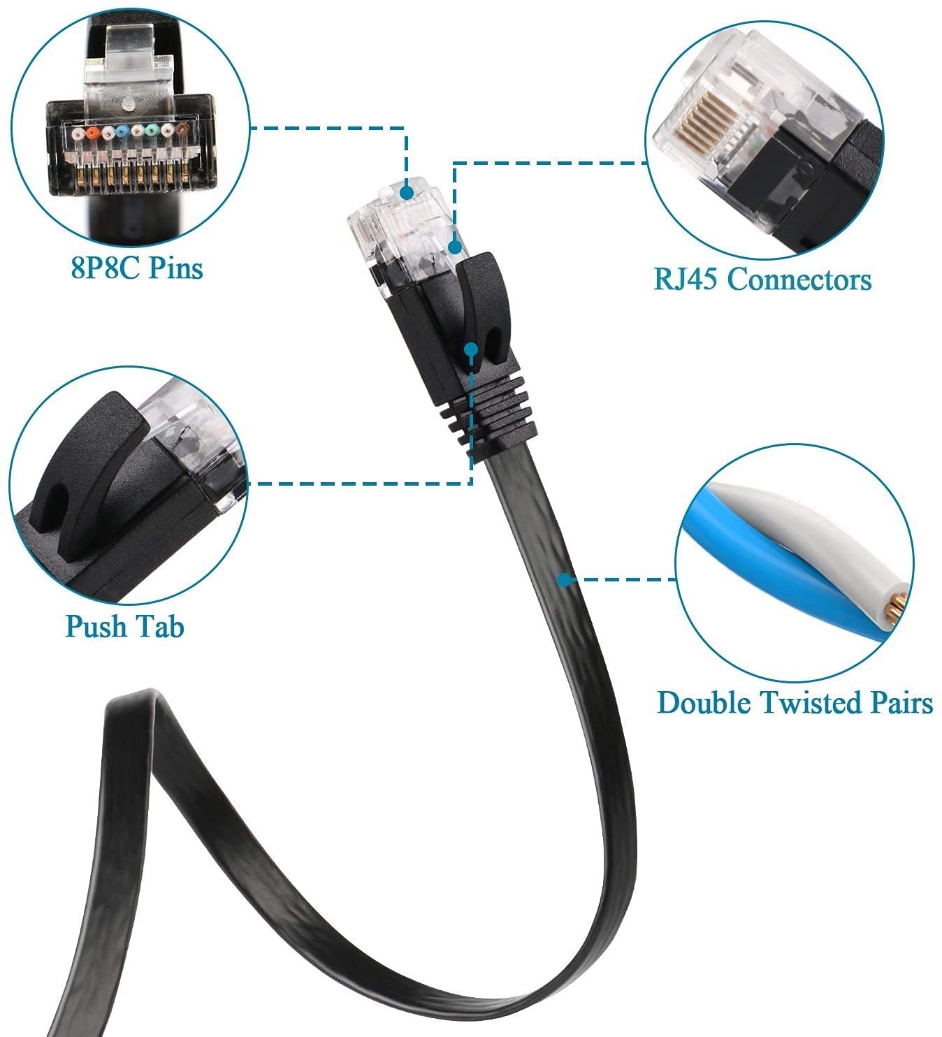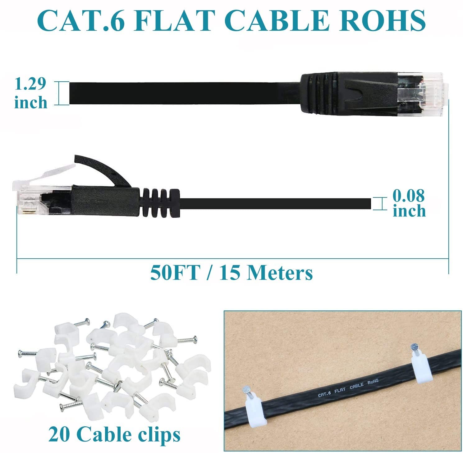 Universal Networking Compatibity: High performance Cat6 ethernet cable, 100 feet, provides universal connectivity for LAN network components, supports all devices with RJ45 Jacks, Fit for PCs, computer cable servers, switch boxes, ADSL, printers, routers, network media players, hubs, television set with network interface, Modems, laptop, tv, USB LAN cable adapter, PS4, Xbox One, Xbox 360, Gaming, NAS, keystone jack, networking equipment, inline coupler Universal Networking Compatibity: High performance Cat6 ethernet cable, 100 feet, provides universal connectivity for LAN network components, supports all devices with RJ45 Jacks, Fit for PCs, computer cable servers, switch boxes, ADSL, printers, routers, network media players, hubs, television set with network interface, Modems, laptop, tv, USB LAN cable adapter, PS4, Xbox One, Xbox 360, Gaming, NAS, keystone jack, networking equipment, inline coupler Faster Speed & No Interference: 4 UTP(Unshielded Twisted Pair) patch LAN cable th RJ45 connectors are made of copper wires, provides performance of up to 250 MHz, protects 100 feet ethernet cable from crosstalk, noise and interference;With 8 pure copper contact pins on each end, cat6 long ethernet cable fit for PS4 is suitable for 10Base-T, 100BASE-TX(Fast Ethernet), 1000Base-T/1000base-tx(gigabit ethernet)and 10gbase-t(10-gigabit Ethernet) Flat Design & 20 Free Clips: Cat 100 feet internet wire with Ultra-thin technology avoids tangled cords and saves space;With 20 FREE cable clips, you can easily and seamlessly make the cable run along walls, follow edges or corners;Super flexible when run under the carpet or bent in the plane of its thin cross-section such as doors, drawers, rotating arms etc, cleaner and safer Durability & Stability: PVC jacket protects inner cooper core;No need to worry about the mess issue of 100ft cat 6 ethernet cable when surfing the net, watching TV, stream video, listening to the music and transmissing data at greater speed of 100 feet lan cable fit for PS4;Cat6 flat ethernet cable is suitable for Fast Ethernet, Gigabit Ethernet, and 10-Gigabit Ethernet Enhanced Safety:This flat network cable is LSZH-tested, ensuring low smoke and low toxicity for enhanced fire safety;It also offers corrosion resistance and long-term performance, making it a reliable choice