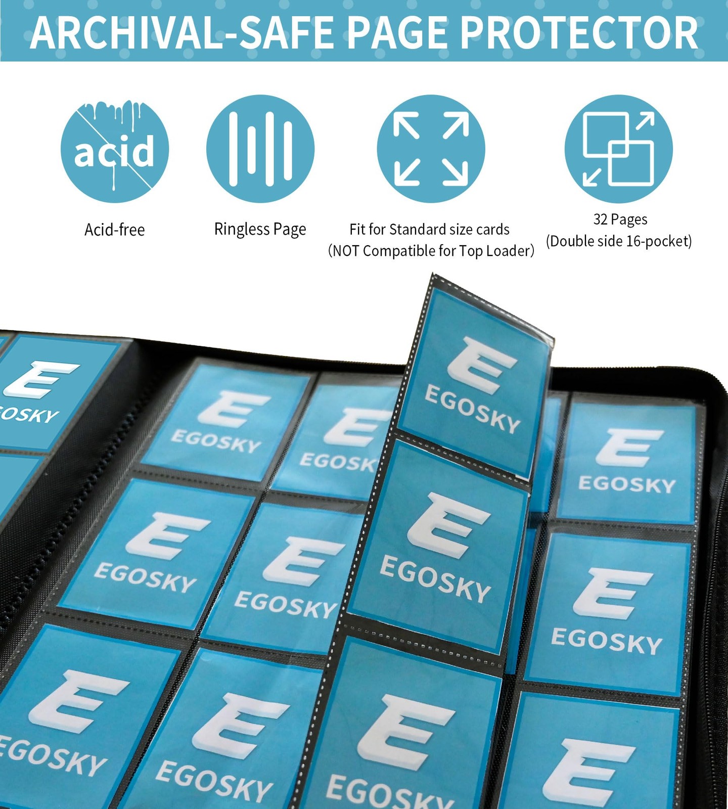 16 pocket card binder ample storage space, allowing you to keep up to 1024 cards organized and easy to access. 【Large Capacity】This 16 pocket card binder come with 32 card sleeves, double-sided loading can store up to 1000+ cards, meet your collection hobby, and keep your trading cards in mint condition and organized 【Side Loading Card Binder】 Side loading pockets make inserting your cards easier. All pages are padded and built to resist warping. Unique design allows cards to be stored securely, easily accessible and will not slip out easily 【Multiple Protection】 The PU Leather hard cover is simple and elegant. This 1000 card binder is built to endure daily handling. Its elegant simplicity coupled with robust construction protects your collection for years 【Wide Application】 Trading card binder is perfect for all standard 2.5"x 3.5" trading cards, such as sports cards (baseball cards / football cards), game cards, trading cards, business cards, mini photos or other cards 【Ideal Gifts】 card collecting binder is a perfect way to showcase your favorite cards and make your collection stand out! A practical gift for card collection and storage, or as a binder for school supplies