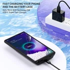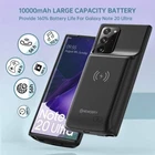 【Qi Wireless Charging Supported】Note 20 ultra battery case supports convenient wireless charging. The wireless charger will charge your phone and the note 20 ultra 5g case battery at same time, phone charge first. Say goodbye to low battery anxiety and awkward moments. 【Sync File & Android Auto &NFC Supported】Be free use all function of Galaxy Note 20 ultra, you can enjoy the fun and convenience of Android Auto, NFC and transfer data without removing the case. No matter when and where, you can enjoy smart life with note 20 ultra charging case. 【Fast Charging】10,000mAh note 20 ultra case charger can be fast charged. It only takes about 5 hours to fully charge your phone and 10000mAh charging case. Note: ONLY compatible with Samsung 18W USB-C quick charger and the case charger can NOT fast charging you phone. 【Extend 160%+ Power to Phone】 Compatible with Samsung Galaxy Note 20 ultra 5G, 6.9". Built in 10000mAh rechargeable Li-polymer battery, offers extra 160% battery life for your phone. This note 20 ultra charging case can power your phone as a high capacity power bank and protect it as well. Keep your phone alive all day long. Product Specifications: Capacity: 10000mAh Input: USB-C DC 5V/1.8A (MAX) Wireless DC 5V/1A (MAX) Output: USB-C DC5V/1.5A (MAX) Battery case fully charges the phone: 2h To fully charge the battery case: 6h To fully charge the battery case via wireless charging pad: 8h To fully charge the battery case and the phone: 10h DOES NOT compatible with type-c headphones. Support Wireless headset. Support Data Sync/Samsung Pay/Samsung Dex. Support QC3.0 18W Quick Charge adapters. Support QI Wireless charging. NOTE : If you receive Note 20 Ultra battery case is not 100% satisfied, please feel free to leave a message to us, we will reply within 24 hours and give you a satisfactory solution! 1.Installation: Bend the soft part, slide the phone into the bottom slowly, pay attention to the connector, make sure the battery case lightning connector is plugged into the phone charging port properly and entirely. It's manual not automatic,manually press the button on the back for 3s to start or stop charging. 2.Removal: Bend the soft rubber part, slide the phone our of the charging case. please pay attention to the connector. Check the remaining battery lever with a touch of button. Charging Time: Battery case fully charges the phone: 2.5 hours. To fully charge the battery case: 3.5 hours To fully charge the battery case and the phone: 5 hours