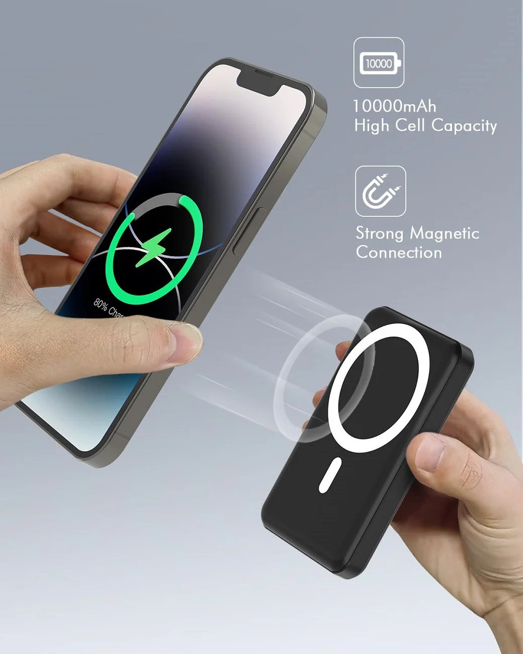 The Wireless Portable Charger from DaDZ01 is an innovative solution for keeping your devices powered up while on the go. With a robust 10,000mAh capacity, this magnetic power bank is designed specifically for iPhone models 12 through 16, including the Pro and Pro Max variants. Its compact size and lightweight build make it an ideal travel companion, easily fitting into your pocket or bag without adding bulk. The built-in super strong magnet ensures a secure connection to your phone, minimizing the risk of accidental drops while charging. This power bank doesn't just look sleek; it also performs efficiently, allowing you to charge multiple devices simultaneously. Equipped with a smart LED display, the charger provides real-time monitoring of the remaining power, eliminating any anxiety about running out of battery. You can charge up to three devices at once through its versatile charging options, including magnetic wireless charging, Type-C output, and Type-A output. The advanced intelligent control chip automatically detects the connected device and adjusts the output current accordingly, ensuring that your phone charges quickly without overheating or overcharging. This feature is particularly beneficial for users who frequently switch between devices, as it simplifies the charging process and enhances overall efficiency. The Wireless Portable Charger boasts impressive fast charging capabilities, supporting up to 15W for MagSafe wireless charging and 22.5W for USB-A PD charging. This means you can quickly power up your devices without waiting for extended periods. Furthermore, the charger is designed with safety in mind, featuring built-in protections against overcharging, over-current, and short circuits. The soft silicone material used in its design adds an extra layer of protection for your phone while charging. For anyone who relies heavily on their devices throughout the day, this power bank is a must-have accessory that combines practicality with cutting-edge technology. 10000mAh capacity for all-day power Strong magnetic attachment for secure charging LED display for real-time power monitoring Simultaneous charging for up to three devices Fast charging capabilities: 15W MagSafe, 22.5W USB-A Compact and lightweight design, easy to carry Built-in smart chip for optimized charging Safety features to prevent overcharging and overheating Compatible with iPhone 12/13/14/15/16 series Soft silicone material protects phone during charging When compared to similar products on the market, the Wireless Portable Charger stands out due to its combination of magnetic attachment and multi-device charging capabilities. While many power banks offer basic charging functions, this model’s ability to charge three devices simultaneously gives it a significant advantage. Additionally, the built-in LED display is a feature not commonly found in many competing products, providing users with valuable information about their power status. Brands like Anker and RAVPower provide high-capacity power banks but often lack the magnetic functionality that makes this charger so convenient for iPhone users. The emphasis on safety and efficiency further sets this product apart, ensuring that it not only delivers power quickly but also protects your devices during the charging process.