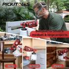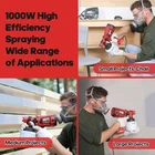 High-Efficiency 1000W Spray Paint Gun - Our powerful spray paint gun offers a maximum power of 1000W and a flow rate of up to 800ml/min, delivering exceptional spray results with a consistent and fine atomization compared to other paint sprayers. Versatile Nozzles and Spray Modes - Featuring 6 interchangeable nozzles and 3 adjustable spray patterns, this HVLP spray gun adapts to various painting requirements, making it the ideal tool for both detailed projects and larger surfaces. User-Friendly Design - The electric paint sprayer is equipped with an adjustable spray speed control knob, facilitating adaptation to various work requirements, ensuring comfort during use with its ergonomic grip. Additionally,included cleaning tools make maintenance a breeze. Wide Application Range - Perfect for a variety of projects, from simple furniture like tables and chairs to larger-scale tasks such as house painting or automotive refinishing, this paint sprayer for painting is designed to meet diverse painting needs efficiently. Complete Accessories and Excellent Customer Service - Your purchase includes the paint spray gun, 6x nozzles, 6x sealing rings, 5x paper funnel, 1x filter cup, 1x viscosity cup, 1x nozzle cleaning needle, 1x clean brush, 1 pair gloves 1x protective goggles and 1x clean cloth . If you encounter any issues during use, our dedicated support team is ready to assist you, ensuring a hassle-free experience with your paint sprayer.