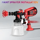 Paint Sprayer High Power Electric Spray Paint Gun High Capacity Container Easy to Clean for Furniture Cabinets Fence Walls Door Works Garden Chairs 6 NOZZLES & 3 SPRAY PATTERNS: 1000W Paint Sprayer is equipped with 6 size nozzles(1.0mm, 1.5mm, 1.8mm, 2.0mm, 2.3mm, 2.5mm), suitable for most painting projects, such as furniture, fences, walls, doors, garden tables and chairs, etc. The Spray Gun offers the flexibility to adjust between three different spray patterns: horizontal, vertical, and circular, making it suitable for a wide range of application scenarios 32000RPM ELECTRIC PAINT SPRAYER: The High Speed Cordless Paint Sprayer operates at 32000 RPM, maximum flow rate is 1,200ml/min, and comes with a large 1400ml capacity container for more efficient paint spraying, including those hard-to-reach spots where a roller simply can't go. The Electric Paint Sprayer offer a faster, more convenient alternative to rollers and brushes ADJUSTABLE FLOW CONTROL: The Portable Paint Sprayer features an adjustable spray width knob that allows you to precisely manage the spraying area and optimize paint usage for various projects. In addition, the flow control knob allows you to easily adjust the paint flow to meet a variety of spraying needs, achieve better spraying results, and have greater flexibility EASY TO USE & CLEAN: The Electric Paint Sprayer can be easily assembled with no tools, even if you are a beginner, you can easily get started after reading the manual. It is very important to clean the paint sprayer thoroughly after use, it comes with a cleaning brush and a needle to remove any hardened paint left in the nozzle, making it convenient and efficient for you to clean COMPLETE PAINT SPRAYER KIT: Paint Sprayer Kit includes 1*paint sprayer, 6*nozzles (1.0mm, 1.5mm, 1.8mm, 2.0mm, 2.3mm, 2.5mm), 1*cleaning needle, 1*cleaning brush, 1*viscosity cup, 1*paint filter, 10*paper funnels, 1*goggles, 1*gloves, 1*user manual. It has all the materials you need to get started, so that you do not need to purchase additional
