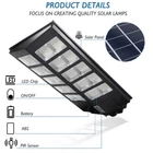 800LED 1000W Commercial Super Large Solar Street Lights Outdoor Dusk to Dawn Solar Lights LED Solar Powered Motion Sensor Human body sensing & radar sensing Wall Lamp Street lamp IP67 Waterproof with Remote Control BLACK 1000W 800 Lamp beads Feature: -Solar power& environmental protection: Solar panels convert solar energy into electricity.NO wires,easy to install.Big capacity battery can save up to 100% electricity. -Ip67 Waterproof & Anti-corrosion : Made of good quality durable ABS material and can be used in outdoor for any bad weather conditions. The working temperature is -50℉-140℉. - Light Control &Remote Control: LED solar flood light will automatically turn on at dusk and turn off at dawn.Remote control functions including 2h/3h/5h/6h/8h setting ,25%/75%/50%/100% brightness. -Super Bright: Imported LED lamp bead light source.Two-way lamp beads wide-angle lighting The brightness is several times higher than traditional light bulbs. -Human body sensing & radar sensing: The light is bright when there are people, and the light is slightly bright when there are no people -Safe to use: Built-in protection circuit for long life. -Multiple installation methods: Pole-mounted and wall-mounted which can be installed on light poles/walls/small diameter cylinders . -Widely Application: Outdoor wall or pole in Plaza, Park, Garden, Courtyard, Street, Walkway, Pathway,Campus, Farm, Perimeter Security and etc. Specification : Wattage: 1000W Fully charged lighting: 20 hours Solar panel: 6V/30W Battery capacity: 3.2V 30AH Product function: radar + light control + remote control Lamp body size: (H*W*L)68*8.5*35cm/26.77*3.35*13.78inch Lamp beads: 800 Irradiation area: 250 square meters Installation height: 4-6m Material: ABS engineering plastic PC cover Waterproof :IP67 Remote control :Normal light or induction mode Remote control battery type: 2*AAA (not included) Life: 100000 (h) Installation Instructions: 1. Please link the shell and light pole of the street light with which is installed on the shell with hex key. 2. Please bore the hole into the wall. 3 .Please tighten the nut with a hex wrench and secure it Package including: Solar Street Lights *1 Remote control*1 Payment Delivery details Terms of sales About us Contact us Payment Payments: Paypal, Google Pay, Visa, Master Card, Amerian Express, Discover. Delivery details All items are shipped from US warehouse located at NJ . We ship to your eBay or Paypal address. Please make sure your eBay or Paypal address is correct before you pay. Terms of sales Free return About us Pls contact our customer service firstly if have any problems , we will help to solve the issue, and could offer free return service for full refund or free replacement after confirming. You can buy from us with confidence Contact us If have any problems, please feel free to contact us.