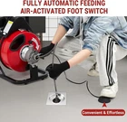 Description: 1. Material: The snake auger cleaner is equipped with 100 feet high-quality manganese steel cable, diameter is 1/2 inches, it has excellent resistance to breakage, rust and corrosion, without the hassle of tangles 2. Design: By using the CW/OFF/CCW knob and air-activated foot switch, you can easily control the steel cables to help you finish cleaning pipes efficiently. 3 Function: Our drain cleaning machine boasts a powerful 250W high-speed motor, ensuring reliable and efficient performance. And it has a semi-enclosed drum, allow you to conveniently observe the remaining cable length. To ensure safety, it has a built-in GFCI to protect the operator from electric shock. 4. Tip: Our drain cleaner machine is equipped with two shock-absorbing wheels allow for easy mobility on stairs and uneven surfaces. The detachable handle comes with a comfortable grip while allowing for easy storage when the machine is not in use. In addition, the tool hook makes it convenient for you to store and replace cutters and tools. 5. Occasion: It can go through various curved pipes from 1 to 4 inches to clear various clogs, keep the drainage smooth.This electric drain snake auger is designed to effectively solves clogging problems in pipes, floor drains, sinks, toilets and more. Ideal for helping eliminate unpleasant odors and troublesome cleaning, perfect for homes, restaurants, office buildings, factories and schools. Package Include: 1x Drain Cleaner Machine With Kits