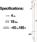 Made with UV resistant industrial strength 6/6 Nylon 100 4 inch pieces 18 lbs tensile strength Working temperature: -40-85 degrees C or -40-185 degrees F Strong cable ties usable in many applications This 100 piece set of industrial strength 6/6 nylon cable ties can help organize your cables and other miscellaneous items that need to be tied together. With a length of 4 inches and tensile strength of 18 lbs, they're perfect for your more compact needs and hold their own without loosening up. The ideal working temperature is between -40 to 85 degrees Celsius or -40 to 185 degrees Fahrenheit.