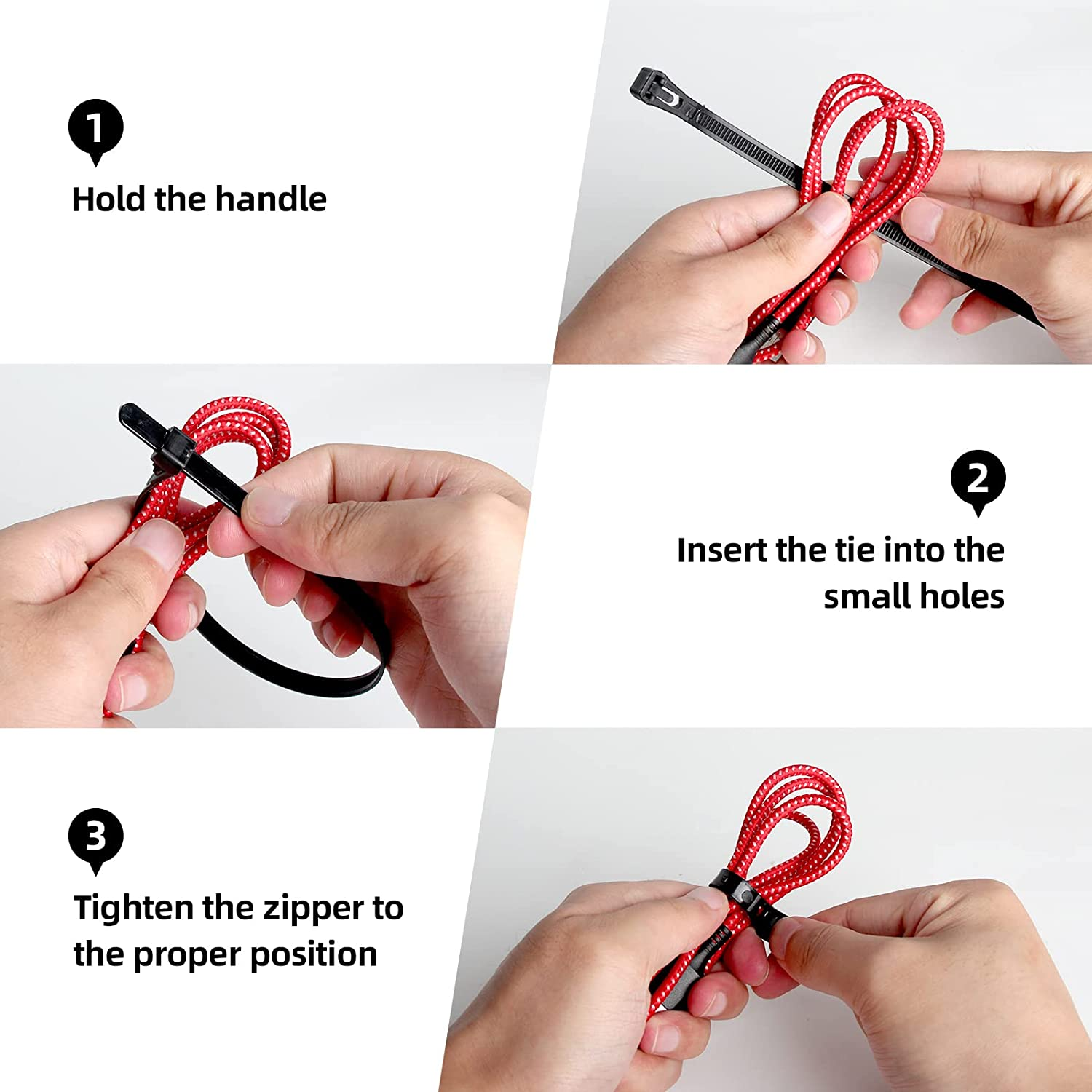 Made of strong and flexible nylon PA66 material,Those cable Ties can withstand temperatures ranging from 40℉~185℉ Self-Lock Design and powerful lock: You can easy to tie wrap your stuff and prevent snagging and easy to loosen and reuse when you need to change/add/delete something Application:Widely used in office,home,garden, You can use the Cable Ties to organize power cords, charging cables, USB cords,or other electronic equipment .Good Chocie to sort different wires,zippers Heavy Duty tensile strength:Black Nylon Tie Wraps can wistand Up to160LBS Specifications Item Name:Cable Ties Color:Black Material:Nylon Feature: Made of strong and flexible nylon PA66 material.Durable and last,Perfect for using in any condition, indoor and out. Unique Self-Lock Design, powerful lock,more tight and easy to opration,You can easy to tie your stuff and prevent snagging. Temperature resistant:The Cable Ties can withstand temperatures ranging from 40℉~185℉. Multi use: In Daily Life,the cable tie can use in many way,you can use it to tie your light string and.you can use it to organize power cords, charging cables, USB cords, or other electronic equipment.Easy to loosen and reuse when you need to change/add/delete something. Works great for other uses, too. Locking mechanism works well.