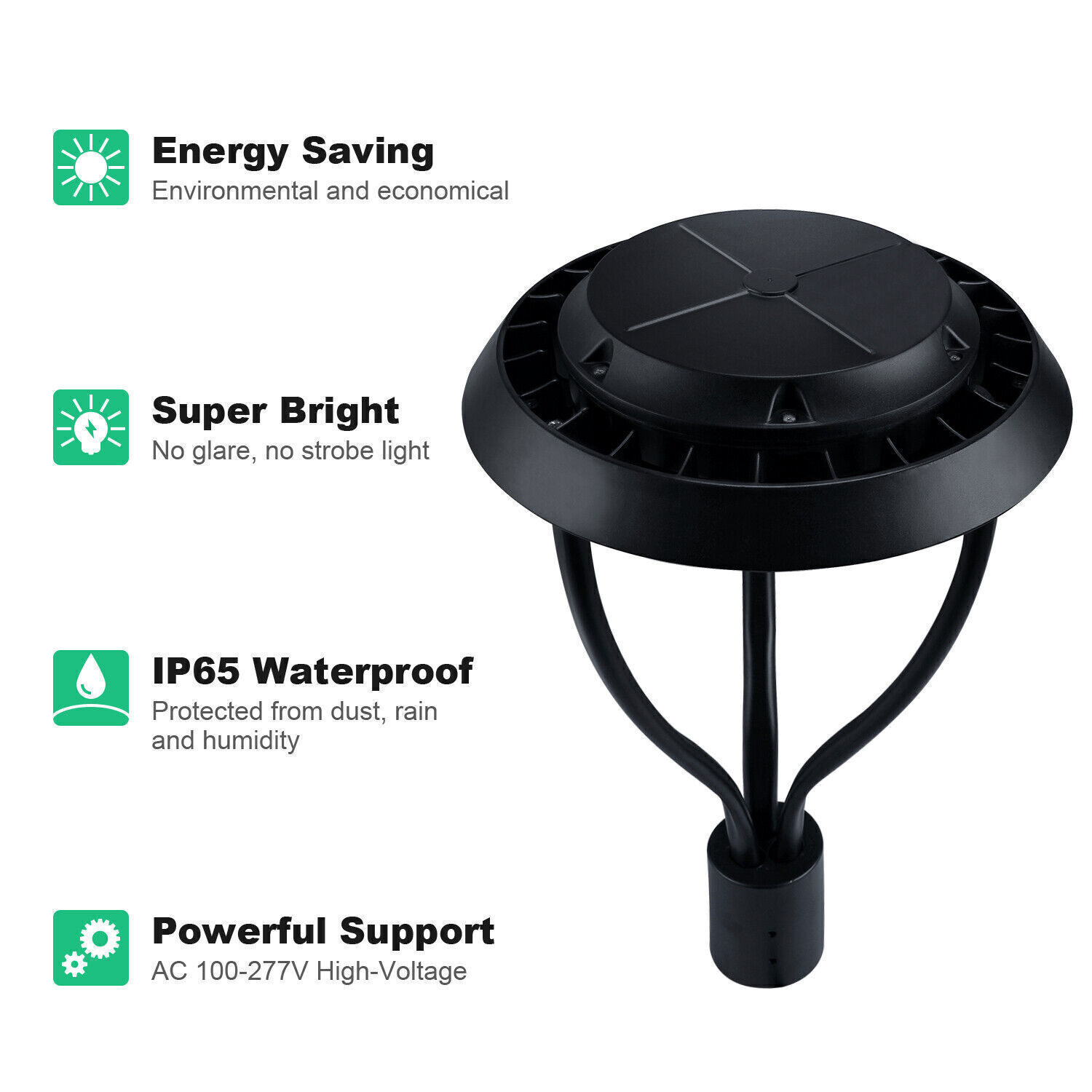 Product Description 100W Post Top Light LED Circular Area Light Garden Street Road IP65 Waterproof Light Up Larger Area - The 100w light post bring 13500Lm with SMD3030 chips, up to 135lm/watt, AC 100-277V universal voltage and 120°beam angle. 5000K color temperature of lighting is a nice choice for street light illumination. Anti-shock, anti-moisture, no glare, no strobe light, no ghosting, protecting your eyes. Excellent Performance - High power factor >0.9, more than 50000hours lifespan, reduce your electricity consumption, save your electronic bill. Provides a continuous, efficient outdoor lighting environment. Commercial Grade Material - The DLC/ETL Listed post pole light fixture made of die-casting aluminum body + protective glass cover. The scientific design helps the exterior light post top to dissipate better, achieve the best use of the led lighting post. IP65 waterproof for drying, wet environment, sandstorms, snowstorms, and harsh weather conditions. Wide Application - The circular post top design give the lamp a uniform brightness and can be applied to a variety of outdoor scences, such as pathway, street, front yard, city expressway, trunk/rustic road, factories, playground, school, garden, courtyard, parking lot, public park, walkway, exterior, driveway, store, farmyard or any other commercial and industrial area. Installation and Warranty - The pole mount of our post area light fits for a 2 3/8-inch OD tenon & less than or equal to 3 inch standard pole, very easy to install and transfor(Please see the video on the product page for more installation info). KUKUPPO offer you lasting safety and reliability backed by a 5-year warranty. For a bulk order, email us in advance to get a different offer. Specifications: Rated Wattage: 100W Luminous Flux: 13500Lm Color Temperature: 5000K Protection Grade: IP65 Material : Aluminum Body+Glass Cover Input Voltage : AC100-277V 50/60Hz Dimension: Dia 460x625 mm Base: 2 Pins Wire Power Factor: >90% Beam Angle : 120 degrees Average Lifetime : More than 50000 hours Flexible Installation The pole mount of our post area light fits for a 2 3/8-inch OD tenon & less than or equal to 3 inch standard pole, very easy to install and transfor Commercial Grade Material DLC/ETL Listed quality. Scientific design helps the exterior light post top to dissipate better, achieve the best use of the led lighting post. Durable Support Rod Made of thick aluminum, stable and strong, waterproof and rustproof. High performance quality provides with lasting safety and reliability. Ultra Bright LED Chips With SMD3030 chips, up to 140lm/watt. Anti-shock, anti-moisture, no glare, no strobe light, no ghosting, protecting your eyes. Kindly Note Please note that the light can not be used IN the water. Please confirm the wire connection is right while installing. About Us Payment Shipping Returns Contact Us SHENZHEN NUOGUAN TECHNOLOGY CO. LTD founded in 2010. We are high-technology comany specialized in manufacture Commercial and industrial LED light. Advanced production equipment and excellend R&D ability help us to combining service ,production sell together provide top-level products to our customers. 1. Payment is expected within 7 days of auction close. Or Unpaid Items will be forfeited per eBay . 2. Taxes may be applicable at checkout as states adopt new laws and regulations regarding sales tax collection. 1. We ONLY ship to USA . 2. Orders processed within 1-2 business day of payment verification. There’s no Delivery service or courier service on Saturdays, Sundays or Public Holidays. 3. We have 3 different warehouse in US,so due to stock status and time differences, we will choose to ship your item from our first available warehouse for fast delivery. 4. We offer Free Shipping within the Lower 48 states! All packages are sent via UPS or USPS.The delivery time for UPS Ground is typically 2-5 business days. We strive to ensure 100% satisfaction for each and every one of our customers. we offer a 30-day 100% money-back guarantee on all eBay orders. If your item isn't just as you wished, simply send it back to us and we'll refund or replace your item. Please note that all returns must be authorized by our Customer Service department. please contact us though message first if you have any problem. USA Warehouse. Fast shipping! We are appreciated your purchasing form our eBay store. Office Time: 9:30 - 18:30, Monday - Saturday (UTC+8) Please contact us with eBay Message. We will respond you within 24 hours on business day. About Us SHENZHEN NUOGUAN TECHNOLOGY CO. LTD founded in 2010. We are high-technology comany specialized in manufacture Commercial and industrial LED light. Advanced production equipment and excellend R&D ability help us to combining service ,production sell together provide top-level products to our customers. Payment 1. Payment is expected within 7 days of auction close. Or Unpaid Items will be forfeited per eBay . 2. Taxes may be applicable at checkout as states adopt new laws and regulations regarding sales tax collection. Shipping 1. We ONLY ship to USA . 2. Orders processed within 1-2 business day of payment verification. There’s no Delivery service or courier service on Saturdays, Sundays or Public Holidays. 3. We have 3 different warehouse in US,so due to stock status and time differences, we will choose to ship your item from our first available warehouse for fast delivery. 4. We offer Free Shipping within the Lower 48 states! All packages are sent via UPS or USPS.The delivery time for UPS Ground is typically 2-5 business days. Returns We strive to ensure 100% satisfaction for each and every one of our customers. we offer a 30-day 100% money-back guarantee on all eBay orders. If your item isn't just as you wished, simply send it back to us and we'll refund or replace your item. Please note that all returns must be authorized by our Customer Service department. please contact us though message first if you have any problem. Contact Us USA 
