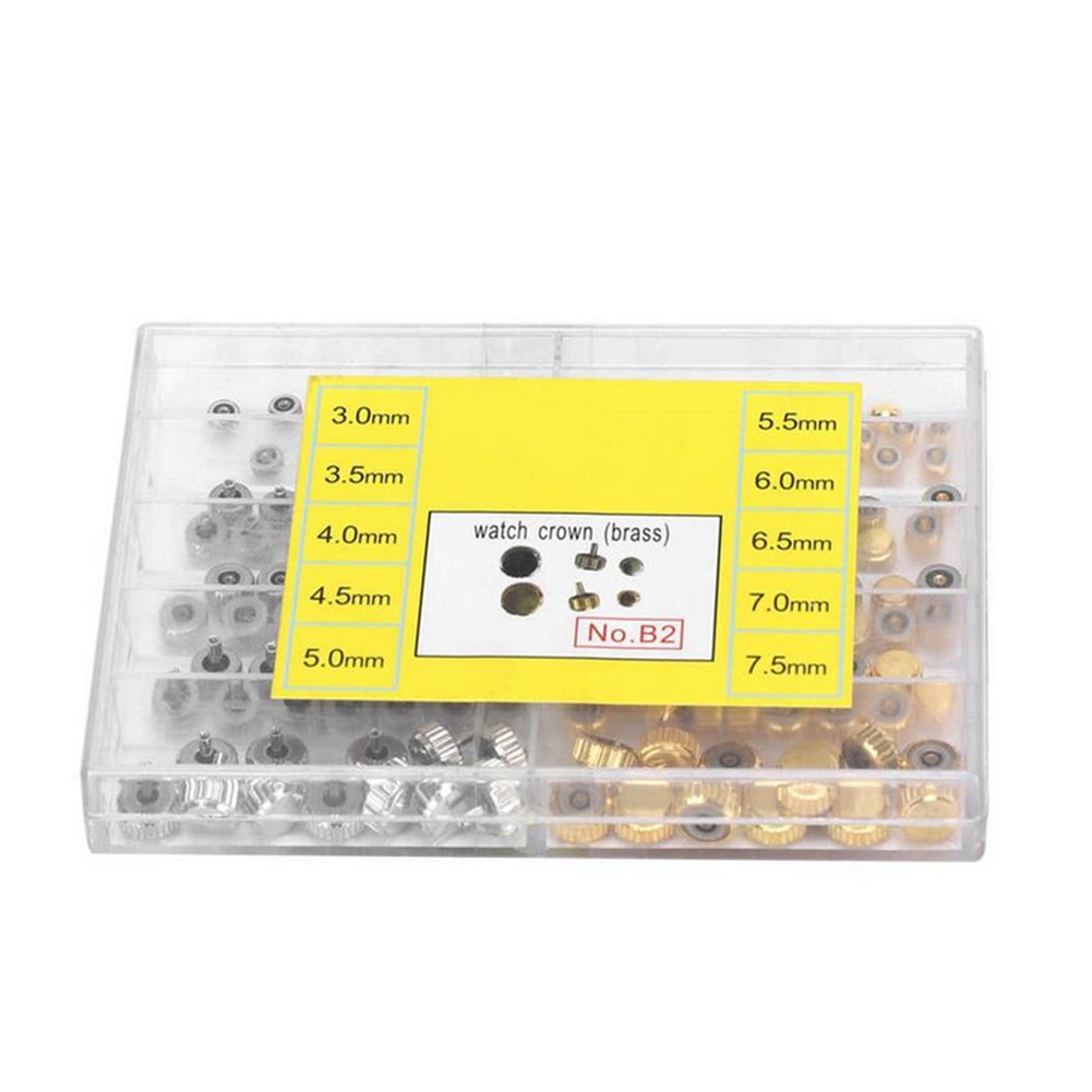 Product Description Features: 1. 3.0‑7.5mm Watch crown parts special designed for watch repairing maintenance. 2. 10 Grid box package design, including silver and gold color watch crown parts. 3. Used for easy and convenient watch adjustment, ensure accurate time keeping. 4. Suitable for watch makers and watch repairing workers to use, practical and wonderful tool. 5. Plastic box has multiple compartments to keep all parts organized and easy to carry. Specifications: Condition: 100% Brand New Item Type: Watch Crown Parts Material: Alloy Usage: Watch Crown Parts, Watch Accessory Package includes: 10 x Silver Watch Crown Parts 3.0mm 10 x Silver Watch Crown Parts 3.5mm 10 x Silver Watch Crown Parts 4mm 10 x Silver Watch Crown Parts 4.5mm 10 x Silver Watch Crown Parts 5mm 10 x Gold Watch Crown Parts 5.5mm 10 x Gold Watch Crown Parts 6mm 10 x Gold Watch Crown Parts 6.5mm 10 x Gold Watch Crown Parts 7mm 10 x Gold Watch Crown Parts 7.5mm Shipping Returns Contact Us Payment 1. Items sent from US warehouse. 2. Receiving time = Processing time + Shipping time. 3. Processing Time: Around 1-2 business Days. 4. Shipping Time: 3-5 business day. It may have a little delay during some holiday (such as Christmas), any problem, please feel free to contact. Always believe we can figure things out with communication, if it comes to return, the pacakge must be intact and the same as you receive. If you have any questions, please feel free to email our service specialists 24 Hours a Day, 7 Days a Week. We will reply you ASAP. Return/refund is accepted within 30 days after the buyer receives the item. NO exchange will be accepted after 30 days from the date when the item is received. Please contact us first before returning your product!!! If you have any questions, our Customer Service staffs welcome you to email us. We strive to answer all questions and resolve any problems as quickly as possible. We care about our valued customers, and will always try to help you. So if you have any problems, You can contact us 7*24, we will reply at the first time. We accept all verified payments from ebay. Orders will be shipped after receiving cleared payment. Shipping 1. Items sent from US warehouse. 2. Receiving time = Processing time + Shipping time. 3. Processing Time: Around 1-2 business Days. 4. Shipping Time: 3-5 business day. It may have a little delay during some holiday (such as Christmas), any problem, please feel free to contact. Returns Always believe we can figure things out with communication, if it comes to return, the pacakge must be intact and the same as you receive. If you have any questions, please feel free to email our service specialists 24 Hours a Day, 7 Days a Week. We will reply you ASAP. Return/refund is accepted within 30 days after the buyer receives the item. NO exchange will be accepted after 30 days from the date when the item is received. Please contact us first before returning your product!!! Contact Us If you have any questions, our Customer Service staffs welcome you to email us. We strive to answer all questions and resolve any problems as quickly as possible. We care about our valued customers, and will always try to help you. So if you have any problems, You can contact us 7*24, we will reply at the first time. Payment We accept all verified payments from ebay. Orders will be shipped after receiving cleared payment. You may also like 28-36.5mm 1.5mm Thick Flat Sapphire Watch Glass Crystal Replacement Repair Parts 8.59 USD 19.99 USD Brushed 60A ESC Waterproof Speed Control 2S-3S LiPo for 1/10 RC Cars Boat 18.89 USD 19.99 USD High Quality Ebony Gold Plated Classical Guitar Chords Tuners 3R 3L Machine Head 23.89 USD 19.99 USD Air Drop Release Transport Thrower Dropper Device For DJI Mavic Air Phantom 3 4 38.19 USD 19.99 USD FD-EOS Adapter Ring No Glass for Canon FD Lens to EOS EF Mount Camera Set 15.69 USD 19.99 USD 105Pcs Servo Plug Male Female JST JR Connector Crimp Pin Wire for RC Car Boat 13.89 USD 19.99 USD powered by