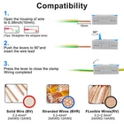 Product Feature ✨ Reliable Safety Protection: Made with a PC insulation shell, these connectors offer high-temperature resistance, corrosion resistance, and aging resistance, effectively preventing leakage. ✨ Practical and reusable: The lever nut kit can be used for the motor, electrical control, power supply, home appliance, lighting, machinery, and other wire connection parts. Every junction independent shrapnel, different wire managed separately, improving safety performance and product quality. ✨ Stable Lever Design: Lever design is tight and firm, ensuring a stable wire connection, and preventing looseness and short circuits. Lever-nut connector instead of traditional electrical tape and electrical butt connectors twist-type, technological innovation reduces wiring time by 70%. Make connections cleaner and space-efficient with low maintenance. ✨ Wide Compatibility: Compatible with 0.5~4mm² solid, stranded, and flexible copper wires, these connectors are ideal for various electrical connections such as ceiling lights, spotlights, and other household wiring needs. ✨ Easy Operation: Simply push the orange lever to 90°, insert the wire, and press the lever back to establish a secure connection. The process is quick, simple, and requires no tools. Product Specification Type Wire Connectors Color Blue+Orange Rated Voltage 300V Rated Current 24A Material Flame-retardant insulating material, tin-plated copper Wire Gauge 24-12 AWG Design Lever design, light-push lever Features Corrosion-resistant, high-temperature resistant, electrical leakage prevention Connection Type Push-in, quick-connect Size Compact, suitable for tight spaces Qty 100pcs Package Included 🎁100pcs Spring Lever Terminal Block Electric Fast Wire Cable Connectors Location Descriptions To improve your buying experience and ensure fast delivery, Your order will be shipped from the warehouse located in either new jersey or california that is closest to your address. If you have any questions, Please contact us. Thank you for your support !