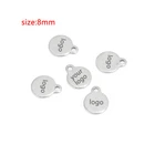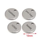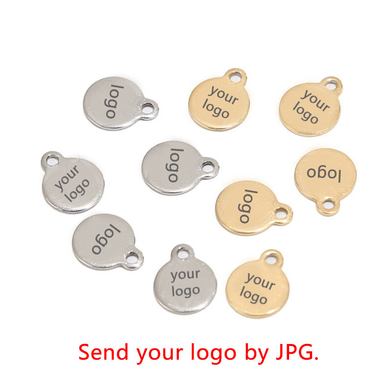 100pcs Stainless Steel Gold Round Personalized Coin Charms Customized Logo Tag Material: Stainless Steel, nickel safe, lead free Size: as shown in the picture Quantity: 100pcs Color: Gold/Steel/Rose Gold How to Order? Send the logo by .JPG and then place the order DIRECTLY. Samples will be made for confirmation. Need to confirm timely once samples sent.