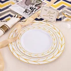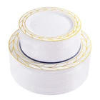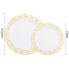 PLASTIC THANKSGIVING PLATES: Disposable Plastic Thanksgiving party plates set Including 50 10.25" dinner plates and 50 7.5" dessert plates, which can serve 50 guests. Disposable Gold plastic plates make your party clean easy! ELEGANT DESIGN: There Simple Gold line in white plastic plates like a China Plate looks elegant Classical . Impress your guests a unforgettable party. Matches with 50pcs pre-rolled Napkin gold silverware set will be Perfecty. HIGN QUALITY:The gold plastic plates is make by food grade plastic that is non-toxic and BPA-free. Important attention The plastic plates are only suite for handle wash and no microware. PERFECT FOR ANY OCCASIONS: This gold plastic plates can meet any request. great for Thsngiving, Christmas, Wedding, Self-service areas, Party, Home, Event, Patio, Poolside, Picnic, and other outdoor use. It is the ideal choice for any party. SERVE: We value our customers. If you are not 100% satisfied with our products, please feel free to contact our customer service, We will provide the best solution for you in 24 hours. Your satisfaction is paramount!