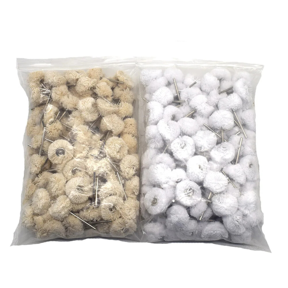 100PCS Cotton Thread Polishing Brush Buffing Wheel for Jewelry Grinding Dremel Rotary Tool Specification Color:Beige,White Shank Diameter:2.35MM