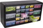 Product Description The 10126 26-Drawer Plastic Storage Cabinet Organizer with Drawers is a great solution for all your storage needs. This heavy-duty cabinet is made in the U.S.A. from rugged, high-impact polystyrene plastic and features 26 large and small plastic drawers offering ample storage space for all your small parts and tools. Plastic organizer large drawers inside dimensions: 4-7/8-Inch x 4-1/4-Inch x 2-Inch; small storage drawers dimensions: 5-1/4-Inch x 1-11/16-Inch x 1-1/2-Inch. Whether you're looking to organize your garage, workshop, classroom, or home, this storage cabinet has you covered. Garage owners and businesses will love the versatility of this cabinet, with the plastic storage drawers perfect for use as a hardware organizer, screw organizer box, or for battery storage. Keep your nails and other small parts accessible with ease. Teachers can use the cabinet for classroom storage, as a teacher toolbox, art storage, craft storage box, for scrapbook supplies, and more. This plastic storage cabinet is also perfect for home storage and organization. Use it as a lego organizer, craft organizer, hobby organizer, or bead storage organizer. It's even great for makeup storage and organization or for medicine and first aid supplies. And with the ability to stack cabinets securely or wall-mount them using keyhole slots, along with finger-grip drawer pulls and rear stop tabs to prevent contents from spilling, this cabinet has everything you need to keep your items safe and organized. Cabinets have 8 small crosswise dividers and 4 large length dividers included. Included dividers are molded into the back of the cabinet (remove with scissors). Additional dividers can be purchased separately. From the Manufacturer 10126 Cabinet stacks securely and can also be wall mounted with keyhole slots. Clarified polypropylene, dividable drawers offer easy content identification. Finger-grip drawer pulls provide easy access and rear stop tabs prevent contents from spilling. products save time and money by helping to increase material handling efficiency in virtually any industry. Our broad range of storage, organization and transport products are used to shorten assembly times, maintain accurate inventories, optimize storage space and improve parts protection. Our mission at is a commitment to manufacturing innovative storage and material handling products of uncompromising quality at a fair price. We support this commitment with professional representation and consistent, superior service to meet the needs of our customers. For quality products backed by more than 60 years of reliable delivery and responsive customer service, we invite you to turn to the advantage. HEAVY DUTY CABINET WITH 26 DRAWERS: The 26-drawer small storage cabinet is made in the U.S.A. from rugged, high-impact plastic and measures 20" W x 6" D x 10" H; Organizer drawers - 6" x 4-9/16" x 2-3/16" (large); 6" x 2-7/32" x 1-9/16" (small) GARAGE ORGANIZATION: The small parts organizer is great for garages and workshops for both homeowners and businesses; The plastic storage drawers can be used as tool box, screw organizer or for battery storage; Keep nails and other small parts accessible CLASSROOM ESSENTIALS: Teachers can use the stackable storage drawers for classroom organization; Use it as a teacher toolbox, art supply storage organizer, craft storage cabinet for scrapbook supplies, and more HOME STORAGE AND ORGANIZATION: This plastic storage cabinet offers many uses around the home; It can be a lego storage organizer, craft organizer, or sticker organizer; Use it for makeup storage and organization or for medicine and first aid supplies FEATURES: Stack cabinets securely or use keyhole slots to mount for wall storage; Finger-grip drawer pulls provide easy access; Rear stop tabs prevent contents from spilling; Drawer dividers are included and molded into the back of the cabinet
