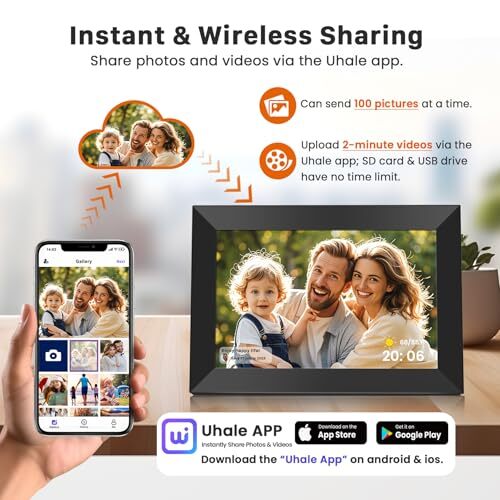 Return Policy Fast Delivery Trusted seller 10.1 Inch WiFi Digital Picture Frame 1280x800 HD IPS Touch Screen, Electronic Smart Photo Frame with 32GB Storage, Auto-Rotate, Instantly Share Photos/Videos via Uhale App from Anywhere Product Description 【Sharing Photos/Videos Privately and Securely via Fr-ee "Uhale" APP 】Capture every moment and instantly share it with your loved ones. Connect the digital picture frame to your home WiFi, download the "Uhale" App on your phone (available for Android or iOS), and send photos/videos to the Uhale digital picture frame from anyw in the world. Uhale App has a blessing template function, sending instant or predetermined blessings to the electronic photo frame on specific holidays 【10.1-Inch IPS HD Touchscreen】The 10.1-inch IPS HD touchscreen with a resolution of 1280*800 can display stunningly clear images and excellent color fidelity preserving the vivid and lovely details of every photo from any angle. You can easily browse photos, delete videos, or pause slideshow playback with just a touch of your finger. Adjusting the brightness is as easy as sliding your finger up or down on the touchscreen 【Auto-Rotate, Large Storage】 Position the digital picture frame according to your liking, and the photo will automatically rotate to fill the entire frame without compromising image quality. Built-in 32GB storage (holds 50,000+ photos) and support up to 32GB Mirco SD card (Max: 32 GB), providing additional storage options. Additionally, support for Uhale PC web/Mirco SD card easy import or backup of photos and videos. Create a personalized photo album to make it easier for you to manage your photo 【Impressive features】①Automatic photo rotation and equipped with desktop/wall mount stand. ②Supports PC Web Transfer. Upload photos from your computer to the "Uhale" Web, and the photos will be received by the frame. ③Multi-functional custom settings, like display photo titles, slideshow mode, play order, instant/timed best wishes, weather/time setting, adjustable brightness/sound, sleep mode, etc 【Digital Photo Frame Video Playback & Slideshow】 digital photo frame can play videos. You can play videos by inserting a Mirco SD card, or import videos into a digital photo frame via a Mirco SD card. Videos from your phone can be uploaded via the Uhale app. Additionally, after uploading the pictures to the digital picture frame, select the slide show mode in the background, pictures can play automatically (Tips: T is no time limit for the video uploads via SD card; Uhale APP allows uploading 2-minute videos) 【365-Day No-Reazon Replacement, Order with Confidence!】As one of the first digital photo frame development companies with 10+ years of focus in the industry, has self-owned R&D technology and production factories. All digital frames are equipped with stable performance chips and new screens to ensure that they run smoothly. If you encounter any issue, our professional after-sales team will handle it properly within 24H Shipping Returns Payment Shipping Shipping is FREE to all addresses other than APO/PO boxes in the lower 48 states. All our stock ships from US-based warehouses. Shipped via USPS or UPS (depending on location and package weight) Unless stated otherwise, all orders will ship within 24-72 hours of your payment being processed. Check our feedback to see the great reviews of FAST shipping we offer. Returns Seller does not accept returns Payment We currently accept payment via eBay managed payments only. Once payment is cleared, we will dispatch your shipment within 1-3 business days. Please refer to the "Shipping" tab for more information regarding shipping speed to your destination.