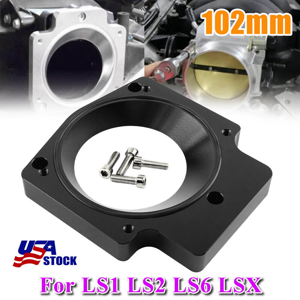 " Application: 102mm Throttle Body - LS LS1 LS2 LS3 LS4 LS6 LS7 LSX Please Check Your Engine Application Before Purchase To Insure Correct Fitment Description: CNC Aluminum Construction Color: Black The Port Size Is 102mm On The Throttle Body Side And Tapers To Match The 75mm Port On The Intake Manifold 19mm Thick And Milled On Every Side To Ensure A Perfect Seal Allows The Use Of A LS2 Style Throttle Body To Be Used With An LS1/LS6 Style Intake Manifold Work With Any 3 Bolt Intake Manifold (LS1, LS6, Truck Style) And 4 Bolt Throttle Body (LS2, LS3, LS7, L92, L99, L76) Direct Bolt-On Fitment; No Modifications Required Requires The Purchase Of A 75mm - 102mm Throttle Body - Will Not Directly Bolt On No Installation Guides Are Included, We Highly Recommend To Seek Professional Installation Package: 1 x 102mm Throttle Body Spacer Adapter "