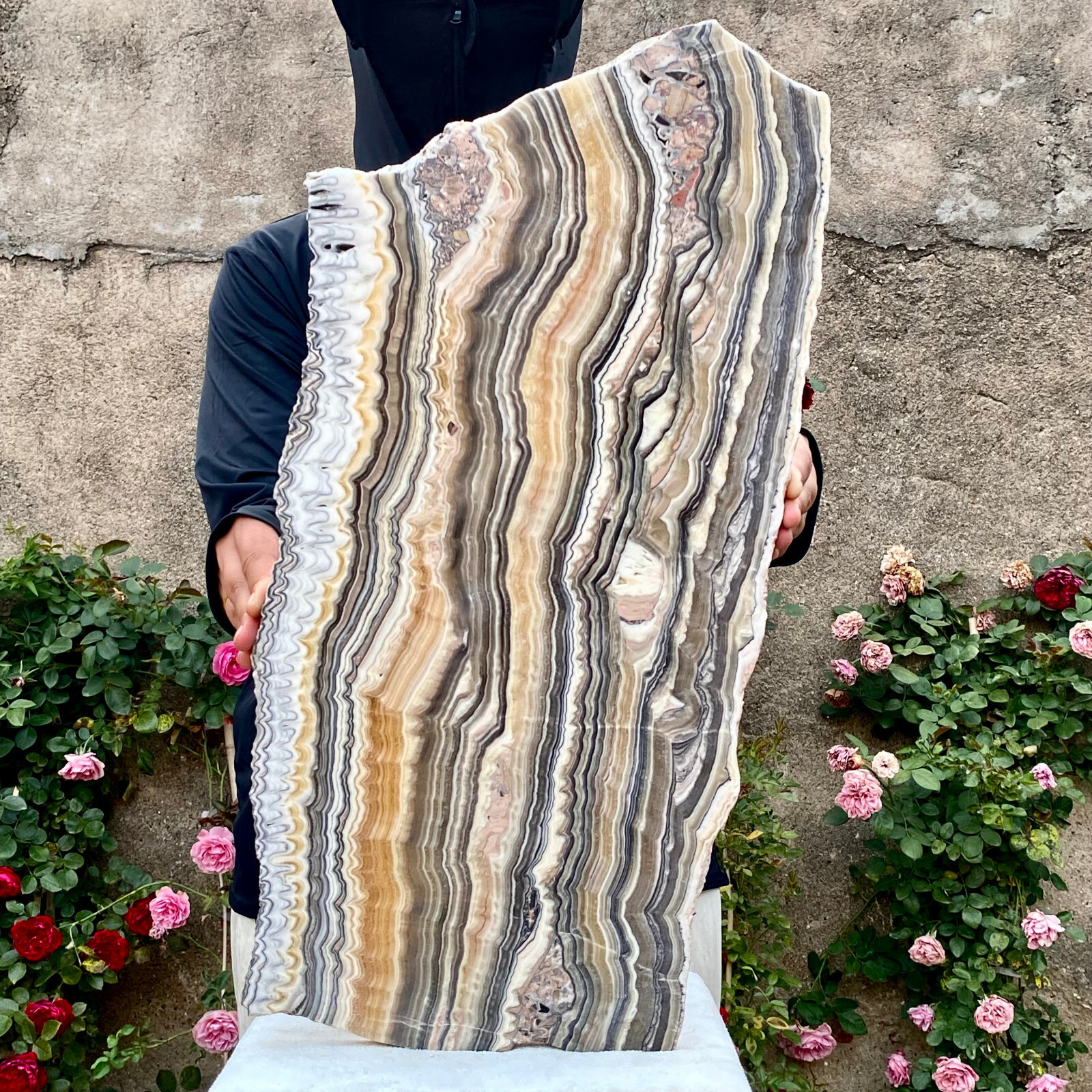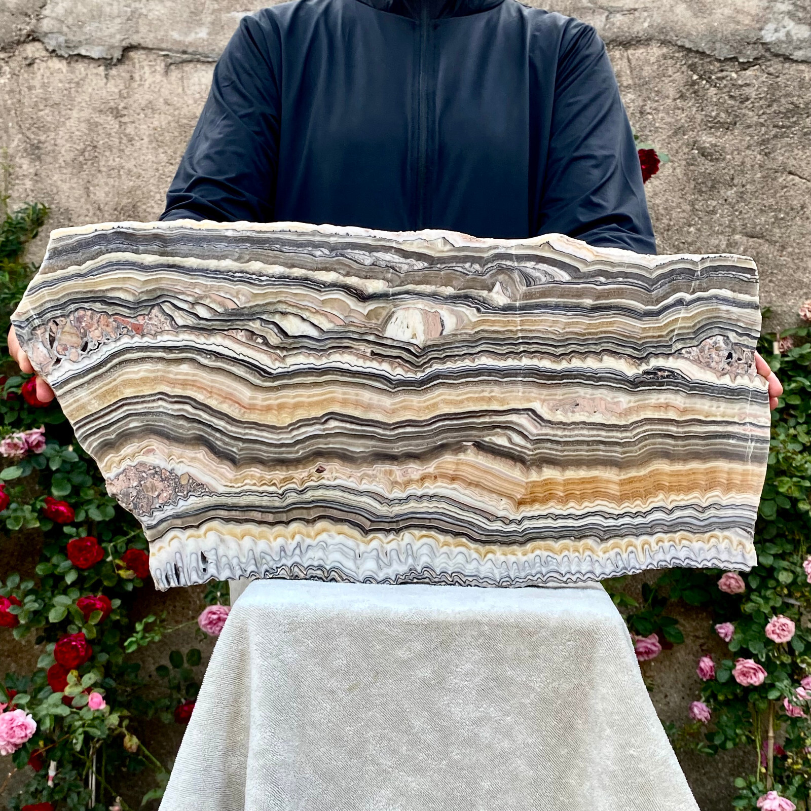 10.4LB Natural banding zebra calcite polished slab crystal reiki healing