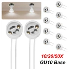 About this item : FOR ALL GU10 BASE BULBS: GU10 base socket is compatible with all types of bulbs as long as it is GU10 base. Parameters: Max wattage 300W, voltage range 110~250V, up to 230℃ heat resistance. Material: Ceramic base and silicone wire (CSA 0.75mm², length 5.9inch/150mm.) Easy to install: One-step installation. Insert the light bulbs into the holes in the center of the sockets, then turn and lock. The light bulbs are held firmly. Product parameters: Material: Ceramic + Silicone Wire Wiring length: 15cm Color: white Maximum wattage:0-300W Voltage range: 110~250V Socket Type: Pen Type Mounting Type: Wall Mount Package included: 10/20/50x GU10 lamp holders