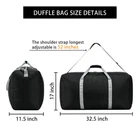 LARGE CAPACITY FOLDABLE DUFFLE BAG FOR TRAVEL:Up to 105L capacity, dimension of this storage bag is 32.5"x 11.5" x 17", total weight is only 1.1lbs. It has 1 zippered main compartment with 1 inside pouch. DURABLE QUALITY LARGE DUFFLE BAG:This extra large duffel bag made from 420D Water & Tear resistant polyester with solid stiching, quality hardware, smooth metal zippers,no sticking at all. The main zipper also has the eyelets to add a small lock. EASY TO CARRY LIGHTWEIGHT EXTRA LARGE DUFFEL BAG:The duffle bag has a long and comfortable padded carrying strap and handles for different options to carry. Can be folded to small size, easy to carry as a "JUST IN CASE" bag for your trip. FUNCTIONAL PACK PLAY BAG:This travel duffle bag is ideal for traveling, but it can also be used to organize clothes and shoes around the house, for storing bulky items or carrying large bags of outdoor sports gear equipment. GUARANTEED:Try this DUFFLE BAG bag with NO WORRY, we offer 1 year limited manufacture warranty.