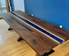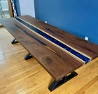 Kindly note: Any accessories, chairs, bench, and legs shown in the picture are NOT included in the given prices. If you want legs, you will need to pay an additional fee. Please contact me if you have any queries." "Note: Any customs duties and other levies in the destination country are the responsibility of the buyer." "Kindly note: Raw wood is used in its natural form and shape to make the table. The table shown in the photos has already been purchased, so the actual product may vary from the picture shown." Elevate your home decor with our exquisite Epoxy Wooden Table Top, a true masterpiece of craftsmanship. Each table top is a stunning fusion of natural wood and mesmerizing epoxy resin, creating a one-of-a-kind work of art that will become the focal point of any room. Our meticulous process begins with hand-selected, sustainably sourced wood that is skillfully cut and shaped to preserve its unique character, whether it's a rustic live edge or a sleek, modern design. The wood is then expertly sealed to ensure durability and longevity. But what truly sets our Epoxy Wooden Table Top apart is the mesmerizing epoxy resin infusion. Our artisans carefully pour and sculpt the resin to create mesmerizing rivers, waves, or abstract designs that enhance the wood's natural beauty. You can choose from a wide range of colors and patterns to suit your style and taste. The result is a seamless blend of nature and artistry, where the warmth of wood meets the contemporary allure of epoxy resin. The glossy finish not only enhances the table's aesthetics but also provides a smooth, durable surface that's easy to clean and maintain. Whether you're looking for a statement piece for your dining room, a unique coffee table, or a conversation starter in your office, our Epoxy Wooden Table Top is designed to impress. It's perfect for both classic and modern interiors, adding a touch of sophistication and elegance to your space. Each table top is handcrafted with precision and attention to detail, ensuring that you receive a high-quality piece of functional art. Plus, we offer customization options, allowing you to choose the wood species, size, and epoxy resin design that best suits your vision. Bring the beauty of nature and the allure of contemporary design into your home with our Epoxy Wooden Table Top. Experience the artistry of our process and transform your living space into a haven of style and sophistication. Upgrade your home today with a piece that's not just a table but a work of art. Explore our selection and discover the perfect Epoxy Wooden Table Top to complement your unique style.