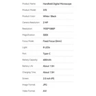 Features: 【High-Definition Clarity】The handheld magnifying glass boasts a 2-inch IPS HD screen, delivering true-to-life color reproduction and clear observation results. Its 2 million real pixels meet your daily observation needs, providing unparalleled clarity for detailed examination. 【Excellent Brightness of Lights】The built-in 8 LED lights offers extra illuminance when reading in dark space, which is perfect for low vison or macular degeneration people. 【Ergonomic and Comfortable】Designed with ergonomics in mind, the HD magnifying glass features a comfortable grip that reduces hand fatigue during prolonged use. Its user-friendly design ensures a comfortable observing experience, even during extended periods of holding. 【600mAh Built-in Rechargeable Battery】This magnifier powered by a reliable 600mAh built-in rechargeable battery, this device offers the convenience of long-lasting usage without the hassle of frequent battery replacements. 【Widely Used】Whether reading newspapers, documents, maps, coins, stamps, electronic parts, jewelry, photos, needlework, plants, prints, or reading the fine print on coupons, prescription drugs, medical bottles, its adaptability ensures optimal performance in a variety of applications. Specifications: Color: Black / White (Optional) Model: 370 Material: ABS Screen: 2.0 inch IPS Camera Resolution: 2 megapixels Resolution: 1920 * 1080P Magnification: 500X Focus Mode: Fixed Focus (0mm) Light: 8 LEDs Port: Type-C Battery Capacity: 600mAh Operating Time: About 1.5 hours Charging Time: About 1.5 hours Supported Systems: Windows vista/XP/7/8/10/11, for iOS X 11.0 or higher Image Format: JPG Video Format: AVI Item Size: 116 * 66mm / 4.56 * 2.59in Package Weight: 124g / 4.37oz Package Size: 13.2 * 8 * 3.7cm / 5.19 * 3.15 * 1.45in Package List: 1 * Magnifying Glass 1 * USB Cable 1 * User Manual (English)