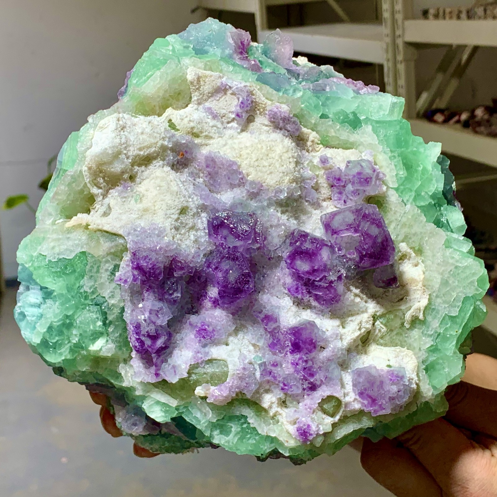 10.5LB Rare Blue Purple Cubic Fluorite Crystal Specimen from Zhejiang China