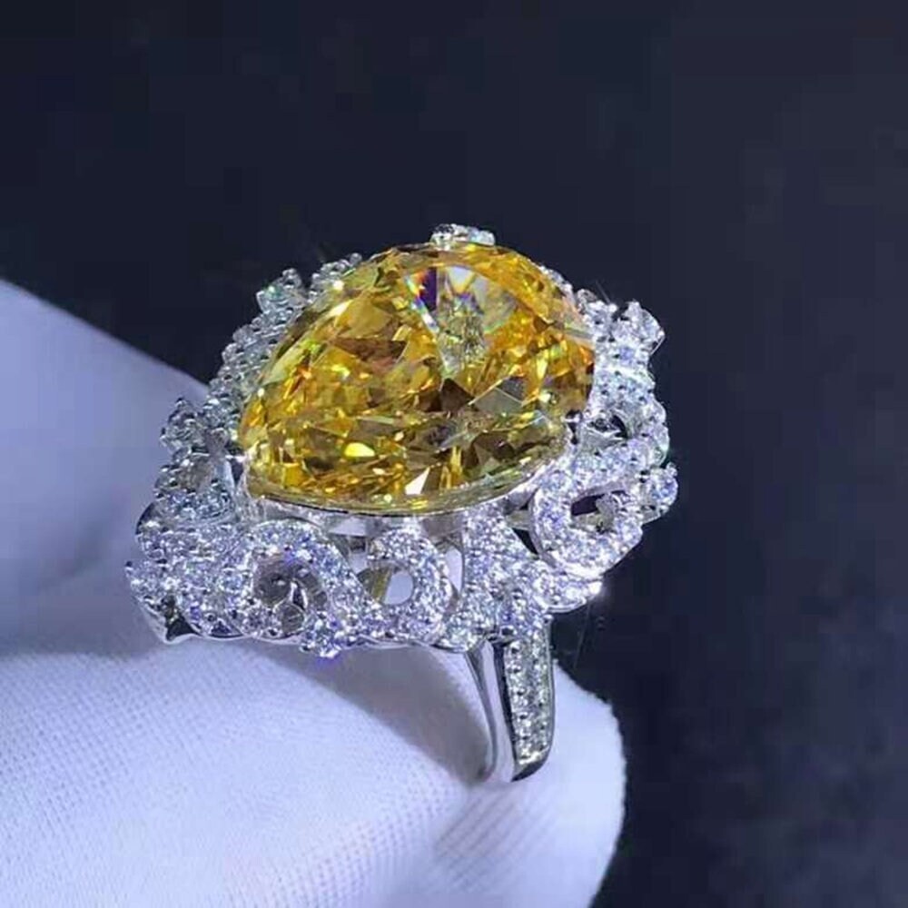 10 Carat Pear Cut Moissanite Ring Vivid Yellow VVS Filigree Halo Bead-set Cathedral ๐ Available Metals: A) 5X Platinum Vermeil, B) Solid 10K Gold, C) Solid 14K Gold, D) Solid 18K Gold, E) Solid 950 Platinum. โ HIGHEST QUALITY Certified White Gold, Rose Gold, Yellow Gold & 950 Platinum. (Not Trash). ๐ Ring Size: 2,3,4,5,6,7,8,9,10,11,12,13,14,15,16 and anything between these ring sizes available. It could be 1/4, 1/2, or 3/4. We Fit It to your Exact Finger Size no matter what size you want. ๐ Main Stone: HARDEST Quality VVS GRA Certified Hand Cut Moissanite (Pass Diamond Testers) โจ Side Stones: Premium Quality VVS Moissanite. (Pass Diamond Testers) ๐ Certified: GRA - GRC ๐ Polish: Excellent Polish. Shiny & Clean for Maximizing Sparkles. โฆ Cut: Hand cut Excellent cut & Symmetry with Crisp & Sharp Edges/Corners. ____________________ ๐ 100% Handmade with GORGEOUS & Accurate Details. Itโs an Art, not only a Valuable Material. ๐ 60 Days Money Back Guarantee for Any Reason even if you don't Fall In Love with it. ๐คฏ FREE LIFETIME Main Stone Warranty & Side Stone Replacement. (No Color Change). ๐ FREE LIFETIME Jewelry Cleaning & Re-plating. ๐ Hypoallergenic. Skin Friendly. Doesnโt cause any type of Allergies. ๐ Customizable with/to Your Favorite Stone/Jewelry Type & Shape. ๐ FREE STUNNING Random GIFTS On Every Order (we sell them for +$200 up to over +$700). ๐ฅฐ Amazing Wooden Gift Boxes for Your Main Jewel & its Gifts. ๐ฅณ Gift Wrapping Available (we wrap with no tags or receipts, ready to present). ๐คฉ VIP Customer Service to Make Your Dreams Come True in the Most Fantastic Way. ๐ FREE SUPER FAST FedEx Express Shipping. ____________________ ๐โ + Our 5X Platinum Vermeil: Platinum is 9.4 times RARER & slightly more DURABLE than gold. Rings with platinum end up more EXPENSIVE than gold because the DENSITY of platinum is a lot HIGHER and the QUALITY is EXTREMELY PURER. Rings THICKLY plated FIVE TIMES with platinum offer MUCH STRONGER PROTECTION against wear and scratches than gold plated jewelry. Therefore they LAST the LONGEST while giving you a SHINY LOOK ALL THE TIME. ๐โ + Our Rare Stone Quality: Here you have the NATURAL looking color of the diamonds in a RARE size with extraordinary VVS1 clarityโฆ Weโre offering the GREATEST QUALITY and VALUE at the BEST PRICE with this design by using very SPECIAL types of GRA Certified Moissanite stones. Natural diamonds in this color, clarity and size are super rare and very hard to find. Some of them easily cost over $10,000 per carat. (please message me for natural diamonds like this color, size and shape so I can give you the accurate price based on your preferences) ____________________ ๐ข๐๐ FREE FAST EXPRESS SHIPPING Processing + Shipping = Receiving Time PROCESSING: Only 1 available. This ring will be shipped within 48 hours. (Other sizes require customization for 2-3 weeks. ) SHIPPING: 2-6 days via FedEx Express for FREE โ Youโll get updated with the tracking code, once your package is shipped. โ We ship with insured FedEx only which is very secure. โ An adult signature is required at the time of delivery. _____________________ โ๐๐ CUSTOMIZATION/PERSONALIZATION: Custom orders with me are SUPER EASY & COMFORTABLE, no matter if youโve never done it before or youโve done lots of them. ๐ค I break down everything into small steps. And we go through the steps one by one together. On each step, youโll get to pick or guide me from the options I represent. ๐ Once we get to the end, your dream comes true. ๐คฉ๐ Because every single detail is just exactly what you want. ๐๐ ๐จ HOW TO DESIGN YOUR RING: A โ Send me some/one image similar to your idea. Or tell me whatโs your favorite shank, profile or stone? So I can show you some options to choose from. B โ Next, I will start designing it right away. Iโll send you some screen shots from what I designed. We can adjust any part of it together, until itโs exactly the way you want it to be. C โ After we get to the ideal conclusion, Iโll render several Ultra High Quality 3D images and a 4K video, so you see what the end result is gonna look like in reality. D โ The moment you approve everything, we start making it. Once itโs finished, weโll ship it the same day. + 3D IMAGE SAMPLES: Before you order yours, you can ask me for some samples of the 3D rendered images and videos. Youโre gonna absolutely love the quality, because they look like real rings. ๐คฉ๐ + Designing your dream ring with me is gonna be a fantastic experience. While you just sit and order, youโll watch how I take care of everything from your idea to the end product in the SIMPLEST & GREATEST way possible.โ โ------------ ๐ AVAILABLE GEMS: All stones are available - Colorless & Colorful Moissanite or Simulated Moissanite. Natural & Lab Grown Diamonds in Colorless or Colorful. Natural and Lab made Emerald, Ruby, Sapphire, Amethyst, etc. Just ask! ๐ฅ AVAILABLE METALS: All metals are available - 925 Sterling Silver, 5X Platinum Vermeil, 9K Solid Gold, 10K Solid Gold,14K Solid Gold, 18K Solid Gold (in Rose, White or Yellow), Platinum 950. ๐ AVAILABLE MATCHING PIECES: We can make matching pieces for this product. Engagement Rings, Bridal Sets, Wedding Bands, Earrings, Studs, Hoops, Bracelets, Bangles, Necklaces, Pendants, and anything youโd dream of. We can design all to set with this item. ๐จ๐จ๐ง๐ฆ AVAILABLE OTHER JEWELRY: We make jewelry as per occasion and celebration like birthdays, birth months, anniversaries, motherโs day, valentine's day, fatherโs day, memorials, thanksgiving, zodiac signs, graduation days, and many more per your request. ____________________ โโโโโ 5 STAR PRISTINE PROMISES: โฆ๏ธ 100% Satisfaction Guaranteed โฆ๏ธ Ethically Sourced โฆ๏ธ FREE Lifetime Ring Resizing โฆ๏ธ FREE Complimentary ENGRAVING โฆ๏