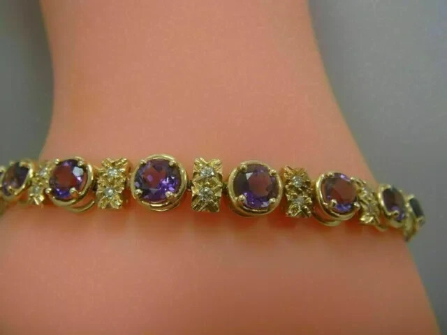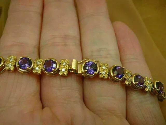 Gemstone Clarity Grade: Eye Clean Setting Style: Bezel Main Stone: Amethyst Sizable: Yes Colored Diamond Intensity: Fancy Item Length: 7.5 in Color: Yellow Closure: Turnlock Theme: Beauty Main Stone Color: Purple Wholesale: Yes Diamond Clarity Grade: Very, Very Slightly Included (VVS1) Number of Gemstones: Multi Brand: Jewelryforyou-7 Total Carat Weight: 10.00Ct Personalize: Yes Type: Bracelet Number of Diamonds: Multi Secondary Stone: Diamond Customized: Yes Shape: Round Occasion: Anniversary, Birthday, Christmas, Engagement, Valentine's Day, Wedding Certification: NA Diamond Color Grade: D Metal: Sterling Silver Main Stone Creation: Lab-Created Material: Gemstone, Stone Main Stone Treatment: Not Enhanced Chain Type: Box Style: Tennis Base Metal: Silver Metal Purity: 925 Seller Warranty: Yes Main Stone Shape: Round Cut Grade: Excellent Seller Notes: “@+++Big Sale Off Hurry up Offer for Limited Time+++@” Charm Type: Traditional Features: Engraved