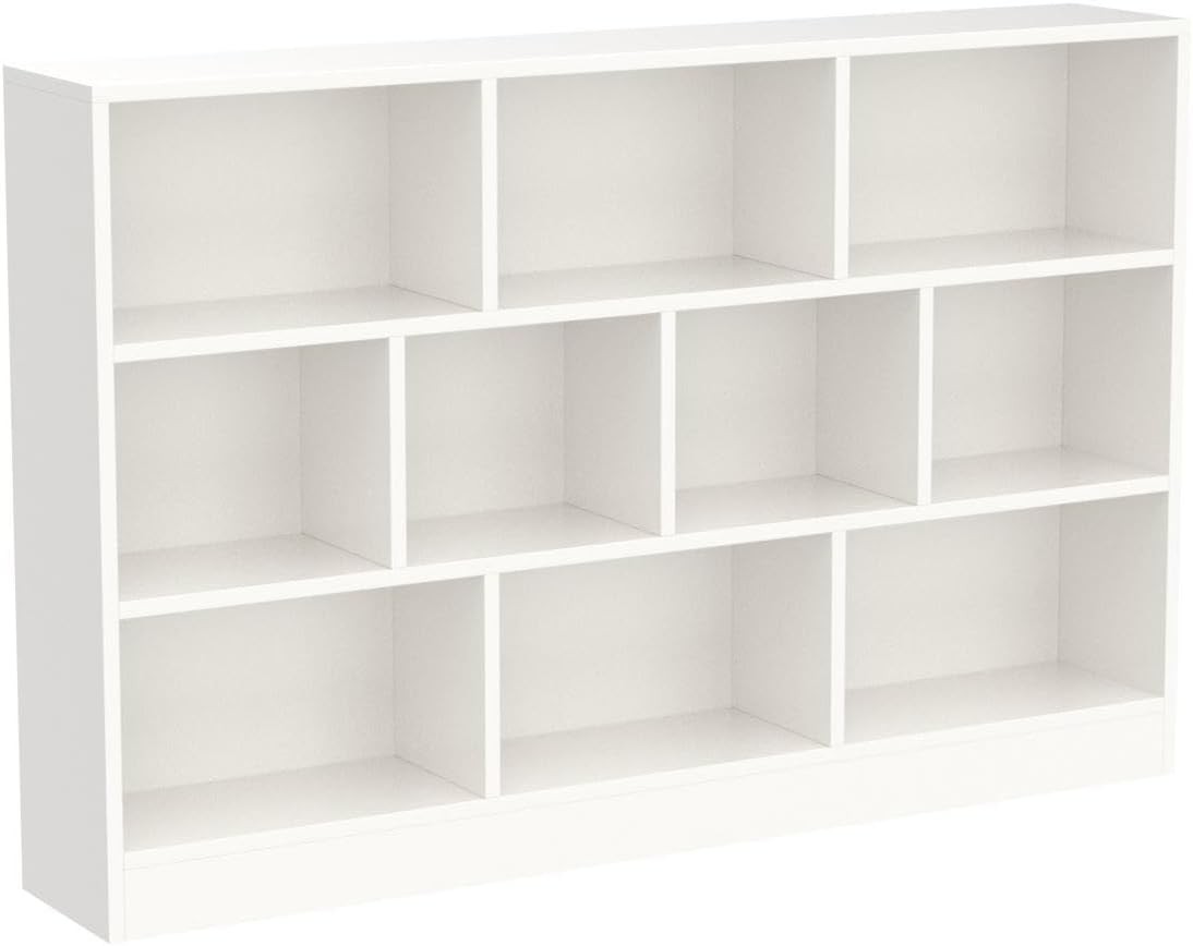 Bookcase 10 Cube Bookshelves, 3-Tier Wood Open Storage Organizer for Living Room Bedroom Home Office, White(55.1''W x 9.4''D x 40.9''H) Product Description About this item 【Saving Space】Small Bookshelf for small spaces. This is a optimal choice for home lovers to reduce clutter without taking up a lot of space and create neat, beautiful and comfortable living conditions for your home. With different sizes of Cubes, this Bookcase can meet your different storage needs. 【Various Uses】With its timeless elegant design, this Cube Storage Organizer meet both aesthetic and functional storage requirements. Moreover, it can be used not only as a bookshelf, but also as a kitchen cabinet, filing cabinet and general storage cabinet that can be placed anywhere in the room. 【Quality MDF Board】 Instead of cheap and vulnerable particleboard, we stick to a high-quality MDF board that makes our bookcase more sturdy and durable. No wobbling, no collapsing. 【Easy Cleaning & Assembly】Thanks to the smooth, scratch-resistant and waterproof surface of this Small Bookshelf, you can simply wipe away stains with a damp cloth. Besides, this bookcase is easy to assemble according to the detailed instructions. 【Simple & Classic Design】- With simple and classic design, this desirable bookshelf is easy to match other furniture and decor. A nice addition for your home and office. Specification: Item Name: Cube Bookcase Material: MDF board Product Color: White Product Size: 55.1”W x 9.4”D x 41.7”H Size of small cubes:13" x11.8" Size of large cubes:17.6" x11.8" Load Capacity of Each Shelf: 30lb(10 Cube bookshelf) Package Contents: 1 x Bookcase , 1 x Assembly Instruction Feature: It is made of thickened MDF board, with excellent physical properties and uniform material, no dehydration problem or moisture deformation. Don't sacrifice style when adding storage to your home, available in different size to suit any existing décor. Sealed edges can avoid bump injuries to the greatest extent; presenting a freestanding cube storage unit that is safe, worry-free and sophisticated. In order to shorten installation time, we will provide detailed user guide and accessories. You can assemble this bookshelf step by step. Smooth surface is easy to clean and maintain with a cleaning and wet towel.