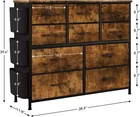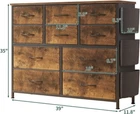 Dresser for Bedroom, 10 Drawers Fabric Storage Drawer, Dressers & Chest of Drawers with Side Pockets, Hooks, Wood Tabletop for Closet, Living Room, Hallway (Brown) 10 Dresser for Bedroom : The wide dresser for bedroom Designed with 10 individually collapsible drawers, including 6 medium-sized drawers for medium and small items, 2 large drawers with 2 compartments for medium size items and 4 large size drawers for Large size items. Jojoka chest of drawers offers endless organizational possibilities. Sturdy and Durable : The sturdy steel frame and waterproof wood top ensure years of use. Heavy-duty metal frame with X-frame backing and wall anti-tilt kit enhances the stability of this dresser. Adjustable feet on the bottom can adjust balance, enhance stability and protect your floor from scratches. For Small Spaces : A neat and clean design that can decorate a wide variety of rooms, making organization and storage drawers the perfect complement to any contemporary decor - living room, bedroom, entryway, kids room, and more. Works perfectly with other storage furniture. Design With Side Pockets & Hooks : Dresser extra design 1 side pocket and 2 side hooks. The side pockets allow for more detailed storage, adding extra space for thin items and the hooks allow for easy access to bags and umbrella, bringing more convenience to your life. Easy Assembly : Comes with detailed instructions for easy installation; all parts and accessories are included in the package. Your satisfaction is our first priority - we are here to assist you with any questions about the quality of our products or any questions you may have during your purchase. PAYMENT SHIPPING RETURN CONTACT US PAYMENT We accept payment either via PayPal or any of the following credit cards; Visa, MasterCard, Discover, and American Express. SHIPPING (1) Usually 1 - 2 business days for handling to ship this item once payment has been received. (2) Usually takes 3-10 business days for the delivery. (Most items are delivered within 3-5 business days.) (3) Shipping is within the continental 48 U.S. States only (4) No international shipping (5) No shipping to Alaska, Hawaii, Puerto Rico, Guam, or the Virgin Islands (6) No shipping to Canada or Mexico (7) No shipping to APO/FPO/DPO (8) We do not offer combined shipping services (9) If your shipping address is different than your Paypal address, please add the shipping address to your authorized addresses in your Paypal account. (10 )We can only ship to an authorized Paypal address. We do not accept email to change shipping address. RETURN Your satisfaction is our Guarantee! If you are not completely satisfied with the product that you received, simply contact us either through the eBay messaging system and we will take care of the rest. Our products are covered by a 30 day return/exchange warranty. Our professional qualified staff will attempt to the resolve the issue in the possible case of a connect or compatibility issue. If the issue cannot be resolved we will either have a replacement shipped out to you or we can issue a refund back to your account. We will make your experience as simple and satisfying as possible. CONTACT US Any problem please rest assure to contact us by eBay message first. We will reply you as soon as we can. Brand Unbranded Type TV Stand Color Brown Features With Drawers Style Contemporary/Modern MPN Does not apply Shape Rectangular Number of Drawers 10 Room Living Room, Bedroom Mounting Freestanding Department Adults Country/Region of Manufacture China Material Alloy Steel Item Length 39in Item Width 11.8in Item Height 35in Finish Polished Item Weight 31.09 Pounds Product Dimensions 42.91"D x 14.57"W x 5.71"H Assembly Status Assembly Required Care Instructions Easy Care Assembly Required Yes