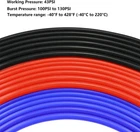 Inner Diameter: 5/16 inch (8mm). Length: 10 feet (3m). Wall Thickness: 1/8 inch (3mm) Made of high temp reinforced silicone Working Pressure: 43PSI. Burst Pressure: 100PSI (high temperature),130PSI (room temperature). Temperature range: -40°F to 428°F (-40°C to 220°C) For air and water only. Not for gas and oil. Quality tested to ensure long-lasting performance Please check the dimensions of your original item before purchase Product Description Application: For air and water only. Not for gas and oil. Quality tested to ensure long-lasting performance. Made of high temp reinforced silicone Working Pressure: 43PSI. Burst Pressure: 100PSI (high temperature),130PSI (room temperature). Temperature range: -40°F to 428°F (-40°C to 220°C) Wall Thickness: 1/8 inch (3mm). It can prevent collapse under vacuum.