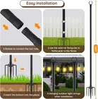 No height restrictions:Made of high quality metal, it will not bend or wobble. The poles for string lights is not limited by its own length, and the excellent load-bearing properties allow you to install it on high fences and walls. Get rid of the general height limitation. You can also hang more number of strings of lights. Also can be applied to banners, lanterns, wind chimes, all kinds of light decoration, etc. Efficient and excellent use:Outdoor string light poles does not take up floor space during use. There will be no impact on the original backyard or deck design with the efficient use of space. And the effect of hanging up, you can make the light effect of the string of lights better. At the same time, because of its own small size, disassembly and storage is also very fast. Easy installation:No additional assembly and base are needed, the head and bottom are completely integrated design. In finding a place with enough support, the bottom will be fixed can be completed. Do not need any assistance, they can be done independently, very convenient. Multi-scene and location use:Lightweight dimensions allow for a diverse selection of mounting locations. For example, walls, fences, door eaves, eaves of houses. Also the use in occasions can be in backyards, patios, decks, bistros, cafes, etc. Indoor and outdoor can be used.