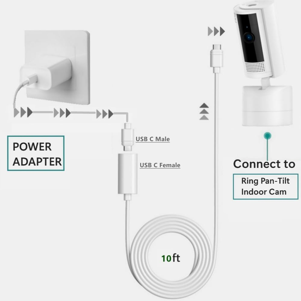Supported Devices: Designed for extending the speaker,camera System by charging. It can acess hard-to-reach place and protect USB Type C female port of your device from frequent plugging and unplugging ,Compatible with Ring Pan-Tilt Indoor Cam, Mag-Safe Charger, iPhone16 /15 etc Function: Use this cable provides an extra length of extension, allowing you to position your Ring device further away from the power source High-Quality Construction: Built with durable materials, this adapter is designed to withstand everyday wear and tear. Its sturdy construction ensures longevity, making it a reliable solution for your connectivity needs The use of high-quality pure copper cores without any power loss allows you to use your device without any interference while charging The embedded design should ensure solid and reliable connections, avoiding loosening due to external forces Product Description