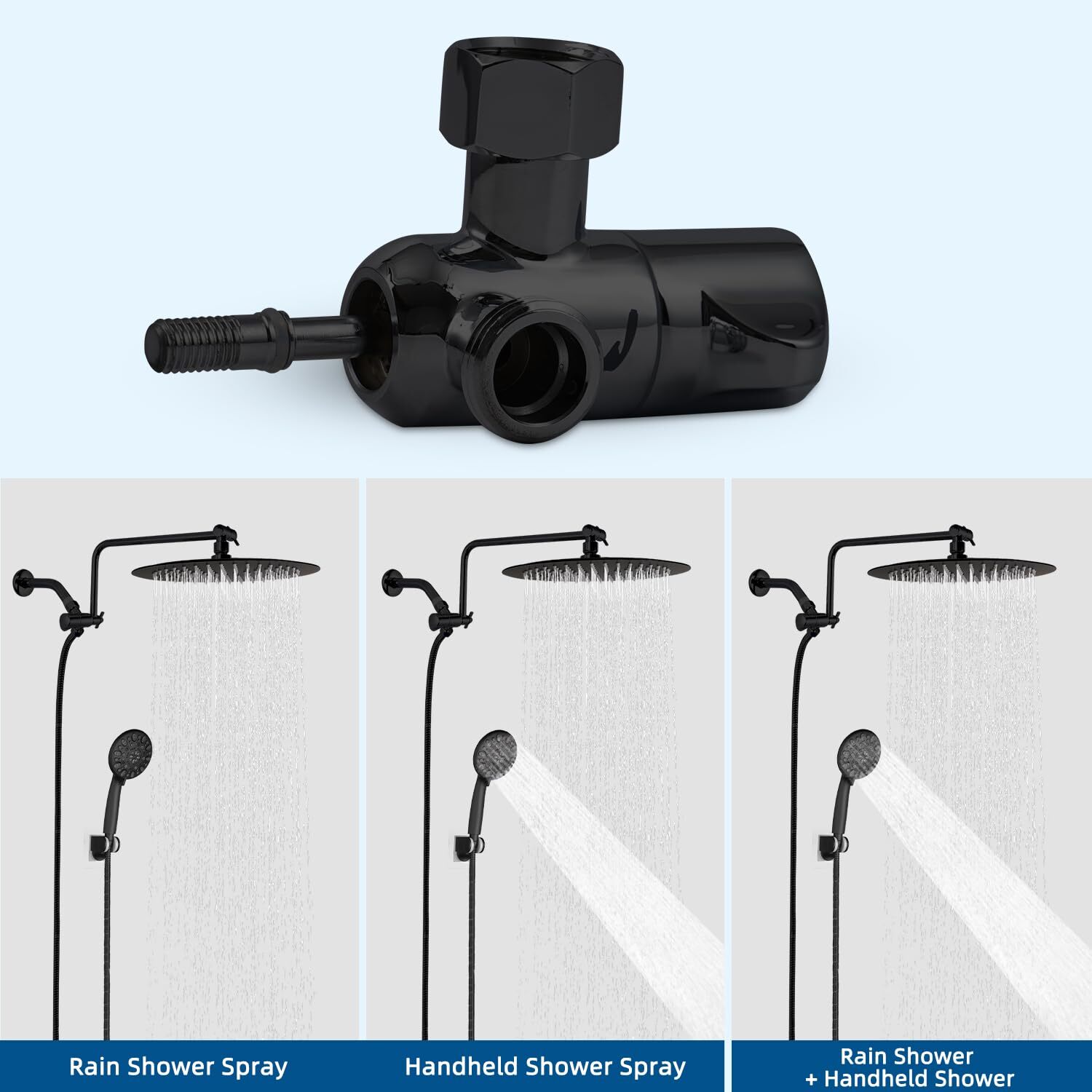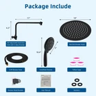 【Outstanding Shower Head Combo】This shower head with handheld includes a 10-inch large round shower head, a 12" adjustable shower arm, a 3-way Diverter, 7 sprays handheld showerhead, a 71" shower hose, and a Shower head bracket. 【10" Round Rainfall Shower Head】 This overhead showerhead with a large shower area and water-saving settings for a luxury waterfall shower experience. Ultra-thin design with air-in technology, 156 self-clean silicone nozzles, and 360-degree adjustable connectors, to meet your family's height and comfort requirements. 【Upgraded 12 Inch Extension Arm & 3-Way Diverter】Right-angle shape design shower arm makes sure your shower head never hits the shower arm when adjusting the height up or down. Made of all metal for maximum strength, durability, and corrosion resistance. Connected with 3-way diverter for no leakage and wobble. 【7 Setting Handheld Showerhead】The 5-inch shower head has 7 spray modes and is durable and drop resistant. Easy to clean. Ideal for relaxing spa treatments, bathing children, cleaning pets, and flushing cleaning applications. 【Quick & Easy Install】No plumbers professional required. Unique leakproof structure rain shower head with handheld spray, advanced black finish, smooth and elegant. Bathroom must-haves.