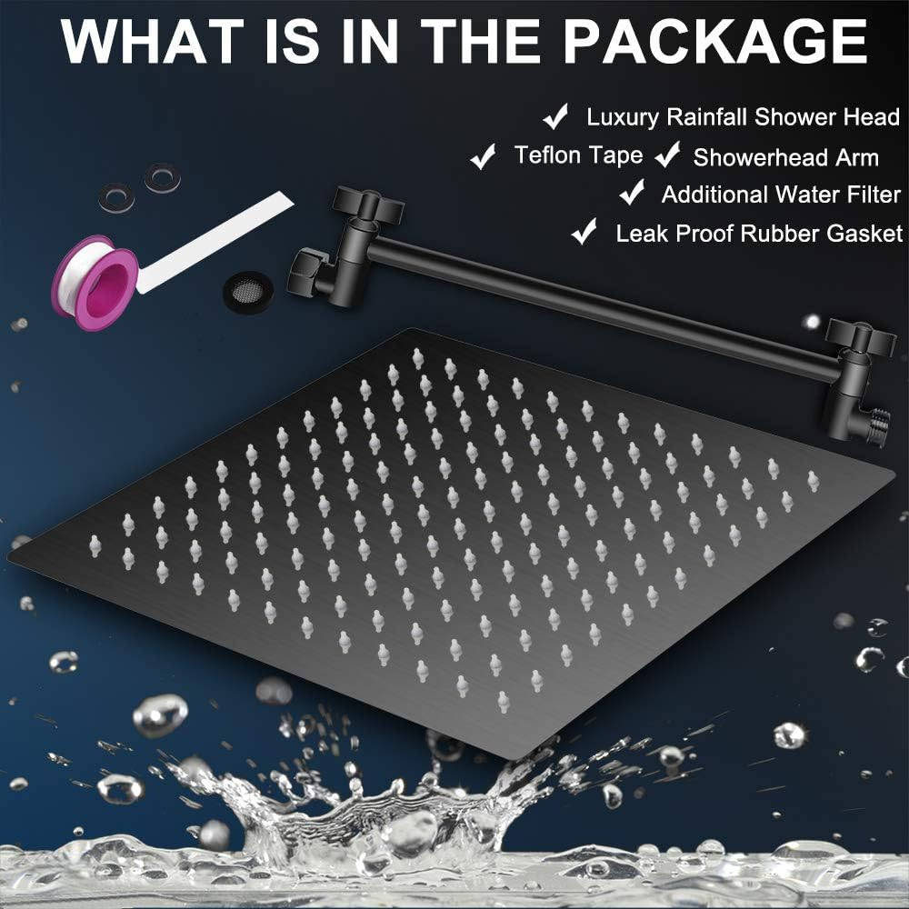 Absolutely love this rain showerhead! The wide 10-inch square design gives great coverage, and the adjustable arm makes it easy to position perfectly. The matte black finish looks sleek, and the stainless steel build feels super durable. Super easy to install—no tools needed. The rainfall effect is so relaxing, and the water pressure is strong without being harsh. Definitely upgraded my shower experience!