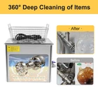 Specification Model: TH-40A Color: Silver Material: 201&304 Stainless Steel, Rubber Shape: Rectangular Style: Modern Tank Thickness: 1.1mm/0.04inch Surface Treatment: Electrolytic Process, Integrated Stamping, Stainless Steel Embossing Process Voltage: AC100-120V, 60Hz Ultrasonic Frequency: 28/40KHz Ultrasonic Power: 240W Heating Power: 250W Power Type: Plug-in Plug: American Standard Number of Transducers: 8 Tank Capacity: 10L/2.64gal Heating Temperature: 0-80℃/0-176℉ Working Time: 0-30min Noise: About 100dB Screen: LED Display Screen Mounting Type: Desktop Placement, Freestanding Net Weight: 7kg/15lbs Gross Weight: 7.6kg/16lbs Package Size: 42*38*37cm/16*14.9*14.5inch Product Size: 33*25.4*25.4cm/13*10*10inch 10L Ultrasonic Washing Machine Dental Lab Instruments Cleaning Machine w/ Heater Description Traditional Hand Washing or Washing Machine Cleaning Is Difficult to Penetrate the Gap to Achieve All-around Cleaning. This Ultrasonic Washing Machine Is Your Ideal Choice. It Is Mainly Composed of the Ultrasonic Generator, Line Controller, Transducer, and Cleaning Tank, and Is an Expert in Cleaning, Maintenance, Oxidation, Extraction, Cavitation, and Other Aspects, Which Enables It to Meet the Different Needs of Users. This Machine Is Very Suitable for Home or Professional Use. Key Features High Efficiency: It Uses an Industrial Strong Shock Head with High Power, Wide Cavitation Range, and High-frequency Vibrations, As Well As 8 Transducers to Generate Millions of Tiny Bubbles to Clean Items Thoroughly and Consistently Even for Cleaning Small Objects with Small Holes, Grooves, Etc. Three Cleaning Modes: It Includes Sweep(28khz), Turbo(40khz), and Degas Modes. the Dual Working Frequency Can Be Used to Clean Different Items for Energy-saving. the 40khz Can Be Used to Clean Objects with Complex Shapes&Surfaces and Blind Holes, and 28khz Is Used for Small or Simple Projects. the Degassing Cleaning Mode Can Penetrate More Tiny Cracks with Greater Force and Better Effect. It Can Help Remove the Oxide on the Metal Surface so That It Is Not Easy to Oxidize and Can Be Stored for a Long Time. Adjustable Temperature&Work Time: You Can Freely Adjust the Liquid Heating Temperature (0-176℉) and the Working Time Within 30 Minutes. Ultrasonic Cleaning and Heating Can Be Carried out at the Same Time to Turn Your Items into a New State. Meanwhile, the Led Display Screen Can Display Them, Allowing You to Grasp the Usage Status of the Prod uct. After Stopping Work, It Will Automatically Display "0000" for the Time. Large Tank Capacity: the Large Tank ( 2.64gal ) Can Wash Lots of Items at a Time to Improve Efficiency. Convenient to Use: the Waterproof Switch Allows You to Easily Start the Machine While Ensuring Great Safety. Meanwhile, the Clear Keys Make It Convenient for Operation. Even Novices Can Get Started Quickly. Excellent Heat Dissipation: the Built-in Cooling Fan and Dense Heat Dissipation Holes on Both Sides Can Dissipate Heat in Time and Prolong the Service Life of the Product. Constant Temperature&Memory Function: When the Temperature Is Higher than the Preset Value, the Machine Will Automatically Stop Heating. Besides, It Will Automatically Remember the Last Working Time and Temperature to Avoid Frequent Settings. Easy Cleaning: the Smooth Surface and Detachable Design Allow for Easy Cleaning. Meanwhile, the Shell Is Embossed with Stainless Steel Embossing Process , so the Dust and Fingerprints Can Be Removed Immediately. Safer to Use: It Uses New Technology to Optimize the Circuit and the Three-phase Plug Can Prevent Static Electricity. Meanwhile, the Self-developed Drive Board Can Ensure Stable Operation and Double Fuse Protection Can Avoid Overcurrent. Strong and Durable: the 201 Stainless Steel Housing and 304 Stainless Steel Tank with an Electrolytic Process Can Resist Wear, Corrosion, Rust, Heat, Shock, and Deformation. and the Thickened Tank (0.04inch) Is Integrally Stamped Without Welding to Avoid Water Leakage. Meanwhile, the Buttons Are Coated with a Film to Be Waterproof and Look More Beautiful, and the Power Cord Adopts Thickened Copper Wires with Good Conductivity to save Electricity. User-friendly Design: the Cleaning Basket and Ball-shaped Basket Can Reduce Friction Between Items and the Machine During the Cleaning Process While Fixing Small Objects Such As Coins, Jewelry, and Watches in Proper Positions. Besides, the Round Hole Allows for Easy Water Drainage and the Drain Joint Is Equipped with a Valve to Control the Water Outlet Speed. Guaranteed Customer Service: We Aim to Provide Quality Products and Services. If You Have Problems, Please Feel Free to Contact Us. We Will Reply and Solve the Problem for You As Soon As Possible. Details Top Lid: It Can Well Seal the Machine to Reduce Heat Loss and Noise. Meanwhile, the Handle on the Top Allows You to Easily Pick up the Lid. Recessed Handles: the Recessed Handles on Both Sides Make It Convenient to Move the Machine. Support Feet: the Four Rubber Support Feet at the Bottom Are Abrasion-resistant , Non-slip , and Can Ensure the Stable Placement of the Product. Application It Is Suitable for Cleaning Jewelry, Watches, Glasses, Tableware, Dental Equipment, Milk Bottles, Circuit Boards, Hardware Parts, Razors, Laboratory Equipment, Etc. It Can Be Used to Clean the Long Holes, Cracks, and Shields of the Workpiece and Is Mainly Used in the Laboratory, Food Industry, Biology Industry, Agriculture Industry, or Daily Necessities Industry. Specification Model: TH-40A Color: Silver Material: 201&304 Stainless Steel, Rubber Shape: Rectangular Style: Modern Tank Thickness: 1.1mm/0.04inch Surface Treatment: Electrolytic Process, Integrated Stamping, Stainless Steel Embossing Process Voltage: AC100-120V, 60Hz Ultrasonic Frequency: 28/40KHz Ultrasonic Power: 240W Heating Power: 250W Power Type: Plug-in Plug: American Standard Number of Transducers: 8 Tank Capacity: 10L/2.64gal Heating Temperature: 0-80℃/0-176℉ Working Time: 0-30min Nois