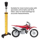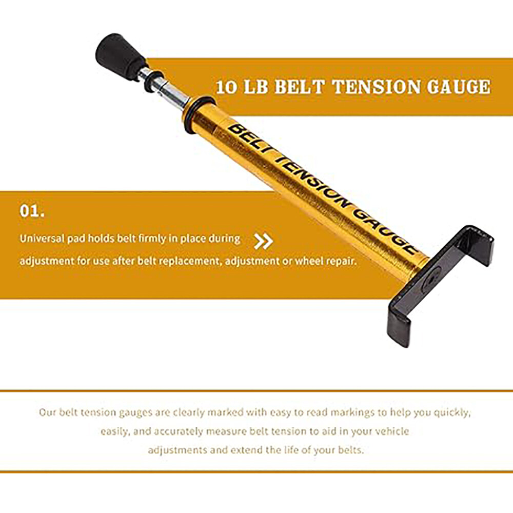 Feature: 1. Universal Design: Our universal belt tension gauge can be used on any vehicle, ATV or motorcycle with a secondary drive belt and a 10lb weight. 2. Easy to Read: The gauge is designed with easy to read. It has clear markings so that you'll never feel confused on the job. It brings more convenience to your work. 3. L Shape Pad: Our universal belt tension gauge features the universal L pad, which is designed to securely hold the belt in place while you adjust the tension. 4. Fast and Accurate Measure: Our belt tension gauge allows you to quickly, easily, and accurately measure the belt tension, so you can be sure you adjust tension correctly for your vehicle and won't shorten belt life. 5. Applicable Scenarios: Our belt tension gauge is applicable for the situations: use after belt replacement, adjustment or wheel repair of motorcycle. Specification: Item Type: Belt Tension Gauge Material: Metal Alloy Feature: 1. Suitable for most motorcycles with secondary drive belts and 10 lb. 2. Clear, easy to read markings for accurate measurements. 3. Universal pad holds belt firmly in place during adjustment. 4. For use after belt replacement, adjustment or wheel repair. Package List: 1 x Belt Tension Gauge Note: 1. Position the small O over the 10 pounds mark. 2. Position the U shaped belt stand against the bottom of the belt at a 90 degree angle and locate the large O to a reference point, record reading. 3. Push upward on the rubber bumper until the small O touches the bottom of the tool body. 4. Realign the large O to the reference point; difference in the reading is the belt deflection.