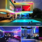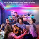Product description Size:100FT/30M How to connection the APP APP name is 'Do Home Strip' , please search for and install the application in Google play or Apple store or via the QR code on the manual or controller. Step 1: Please download APP 'Do Home Strip' Step 2: Please make sure your phone is Bluetooth enabled Step 3: Then strip lights automatically connect to the APP APP Mic Mode Change to Mic mode on the phone APP, you can sing or play musical Instruments, lights will following with the beats to change colors and brightness along. Alarm Clock Set an alarm clock with the LED light strip! Schedule when to turn on and off with the timer function. Specification: Length: 2 x 50 feet Wide: 10mm Color: RGB Dimmable: Yes Size of LEDs: 5050 LEDs Quantity of LEDs: 20 pcs/m, total 600 leds Waterproof: Non-waterproof Working Voltage: 24V Lumen: 10-12lm per led Package includes: 2 x 50ft LED light strip 1 x 40-key RGB Remote control 1 x Bluetooth Controller 1 x Power supply (24V/3A) 1 x User Manual Attentions 1.Please ensure that the adhesive surface is smooth, and make sure the surface clean, flat and dry before sticking the light strips. 2.Before using the remote control, please pull out the transparent insulation sheet inside the remote control. 3.The lights strip can be cutted every 5 LEDs along the marks, but Please make sure the power off first. And if you cut them, you will need one more power adapter to light the rest strip up. 4.led strip is not waterproof. For safety reasons, Please hide the controller and power supply away from the water during using. Adjustable Color Chasing Effects: This LED strip light adopts newly built-in smart IC chips to create chasing effects in a line with adjustable light modes and speed. Bluetooth & IR Remote Control: Control the LED strip light via smartphone app or 24-key IR remote to choose from 16 million colors and adjust brightness. Sync with Music: The LED strip light changes colors according to the beat of music with a built-in microphone receiver and over 200 music modes. Easy Installation: The LED strip light connects easily without pointing at the arrow thanks to an upgraded anti-interface connection design. IP65 Waterproof: This LED strip light is suitable for indoor and outdoor decoration and great for Christmas, parties, shows, and more.