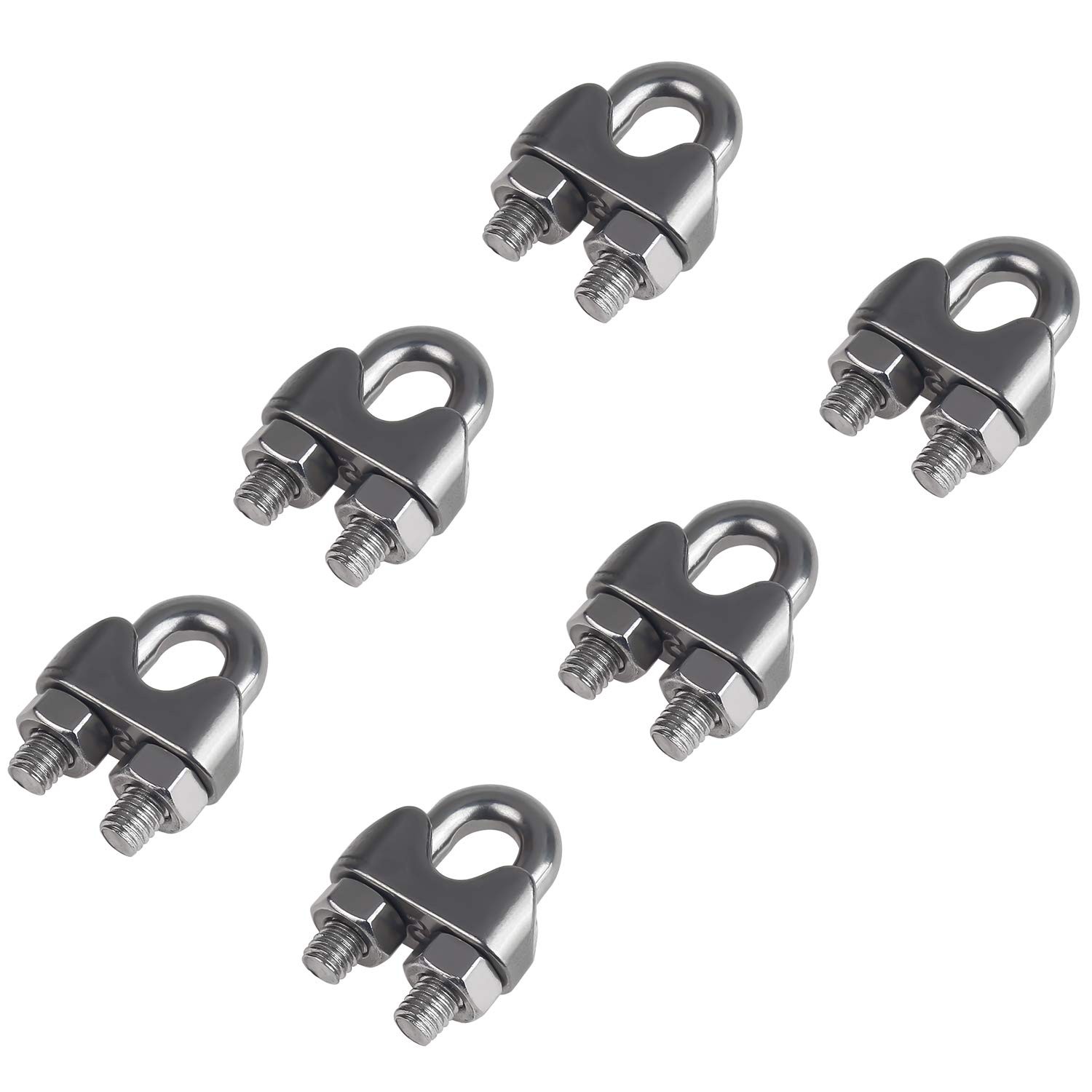 10PCS 1/4 Inch M6 Stainless Steel Wire Rope Cable Clip Clamp (10 Pieces) Product Details Is Discontinued By Manufacturer : No Package Dimensions : 5.6 x 4 x 0.7 inches; 8.96 ounces Item model number : VDRY-KATOU-M6-10G Manufacturer : Favordrory Package: 10pcs Material: Corrosion resistant stainless steel Suitable for 1/4" diameter wire rope or cables Made from 304 stainless steel wire rope clamps, corrosion resistance, long life span for maximum corrosion resistance and durability Perfect for rigging rope, wire and cable in unlimited applications mainly in rigging, temporary guardrail systems, securing loads, hanging banners, flags and signs and basically anything that involves cables 【Specifications】 Color: Silver Package: 10PCS Material: 304 Stainless Steel Compatibility: Fit for 1/4" Diameter Wire Rope and Cable 【Features】 1, 304 Stainless Steel construction provides excellent corrosion resistance. Provides excellent protection against surface abrasion of wire ropes. Enable users to create a very neat and tight loop in coated or bare wire ropes and cable. 2, Designed to couple together two lengths of wire rope, or to form an eye or loop on wire rope, wire rope should be the same diameter as rope clip, consists of a U-shaped bolt, a forged saddle and two nuts, the two layers of wire rope are placed in the U-bolt and clamped into place for a tight connection. 3, Widely used in marine and industrial rigging and wire rope applications, Lifting and connecting, Wire rope fittings, Marine hardware fittings 【Package Included】 10PCS x M6 Stainless Steel Wire Rope Cable Clamp Clips