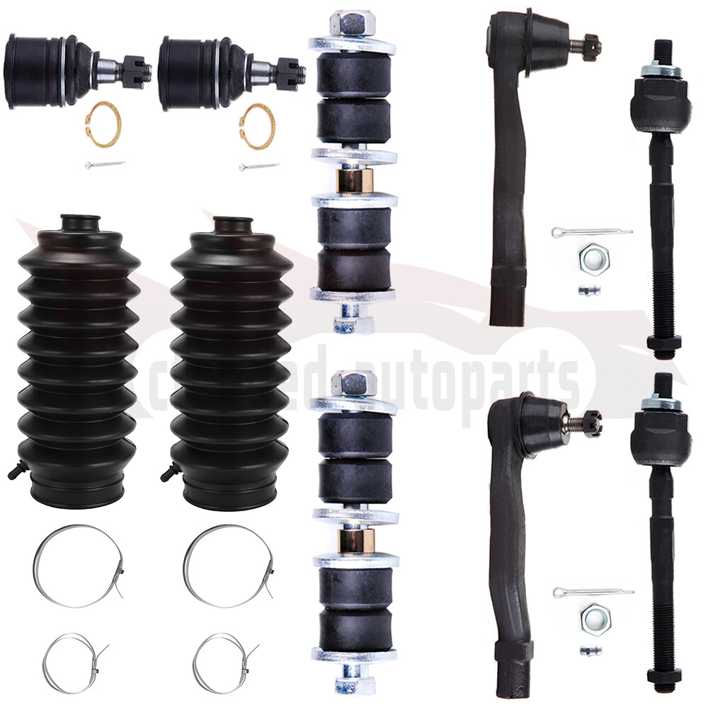 1.Fit For 1994 - 1997 Acura Integra 1992 - 1995 Honda Civic Excludes SI Models 1993 - 1997 Honda Civic Del Sol Excludes SI Models 2.Package Includes: 2x Part# Front Lower Ball Joint-K9802 2x Part# Front Inner Tie Rod End-EV299 2x Part# Front Sway Bar End Link-K90123 1x Part# Outer Tie Rod End - Passenger Side-ES3331R 1x Part# Front Outer Tie Rod End - Driver Side-ES3332R 2x Part# Rack and Pinion Bellow-103-2865 3.Notes Cfspeed-autoparts 10PCS Ball Joint Tie Rod End Sway Bar Link For 1992-95 Honda Civic Acura Integra 1.Fit For 1994 - 1997 Acura Integra 1992 - 1995 Honda Civic Excludes SI Models 1993 - 1997 Honda Civic Del Sol Excludes SI Models 2.Package Includes: 2x Part# Front Lower Ball Joint-K9802 2x Part# Front Inner Tie Rod End-EV299 2x Part# Front Sway Bar End Link-K90123 1x Part# Outer Tie Rod End - Passenger Side-ES3331R 1x Part# Front Outer Tie Rod End - Driver Side-ES3332R 2x Part# Rack and Pinion Bellow-103-2865 3.Notes (1).Please check the fitment chart above before payment making sure all the suspension parts listed on this page are compatible with your automobile. (2).Please refer to Moog official website before narrowing down your search so as to avoid unnecessary item not as described return requests. (3).Please contact our customer services for targeted discount after all the items are received if you have reached any targeted discount thresholds, the terms of which is at the bottom of this page. Ball Joint Replacement Guideline: If there is a knocking or clunking noise in the area of the front axle when the car is traveling over road bumps, potholes or curbs, then there is usually a defect in a component of the wheel suspension. Picture(A) The side of the front axle from which the (vibration) noise is emanating can already be determined during a test drive. The type of noise also already provides certain indications for maintenance regarding which components might be faulty. Picture(B) 1.Raise the vehicle and remove the front wheels. 2.To loosen the fastening screws and fixing nuts of the compression ball joint more easily, spray them with rust remover and allow to act for a few minutes. Picture(C) 3.Loosen the fastening screws of the broken ball joint on the control arm and remove the nuts. Picture(D) 4.Loosen and remove the fixing nut of the ball joint on the steering knuckle. Tip:If the ball stud rotates, hold the ball stud in place with a hexagon socket. Picture(E) 5.Remove the bad or worn ball joint from the control arm. 6.Loosen the compression ball joint on the steering knuckle using a suitable special tool. Picture(F) 7.Clean the cone connection. Tip:For better sealing and durability of the ball joint sleeve, a little silicone grease can be applied to the contact surface. Picture(G) 8.Insert new compression ball joint in the control arm and steering knuckle and tighten with new fixing nuts. 9.Reinstall front wheels. Lower the vehicle and tighten the wheel studs to the tightening torque specified by the vehicle manufacturer. 10.Measure the chassis and adjust it using the various holes on the compression ball joint if necessary. 11.Finally, carry out a test drive. Sway Bar Stabilizer Link Replacement Guideline: While driving, the following signs may indicate a faulty sway bar stabilizer link: (1).Rattling and thumping noises on rough roads. (2).Imprecise vehicle handling. (3).Stronger inclination of the vehicle during cornering. If the sway bar stabilizer link is found to be defective, it should be replaced as described below. Picture(A) 1.Raise vehicle and remove front wheels. Tip:Always check both stabilizer links and replace them in pairs if necessary. 2.Spray fastening nuts of the stabilizer link with rust remover and let act for a few minutes. Picture(B) 3.Loosen the lower fastening nut of the stabilizer link at the stabilizer and remove. Tip:If the ball stud also starts to turn, hold it with a suitable tool. 4.Press stabilizer link out of torsion bar. Picture(C) 5.Loosen the upper fastening nut of the stabilizer link at the suspension strut and remove it. Tip:If the ball stud also starts to turn, hold it with a suitable tool. Picture(D) 6.Press stabilizer link at suspension strut out of bracket. Picture(E) 7.Insert new stabilizer link at suspension strut. Picture(F) 8.Tighten stabilizer link at suspension strut to the tightening torque specified by the vehicle manufacturer. Tip:Secure the ball stud against twisting with a suitable tool. Picture(G) 9.Insert new stabilizer link at stabilizer. 10.Tighten stabilizer link at stabilizer to the tightening torque specified by the vehicle manufacturer. Tip:Secure the ball stud against twisting with a suitable tool. Picture(H) 11.Remount the front wheels. Lower the vehicle and tighten the wheel studs to the tightening torque specified by the vehicle manufacturer. Tip:Even if replacing the stabilizer link does not directly affect the chassis setting, we recommend checking the axle setting and adjusting if necessary after working on the suspension. 12.Conclude with a test drive. Tie-Rod End Replacement Guideline: If you feel a bump in the steering when driving over road bumps or curbs, this might be due to worn tie rod ends or inner tie rods. Clicking noises during sudden steering movements can also be symptoms of a defective tie rod. In order to determine the exact cause and replace the defective tie rod, the car must be elevated with a vehicle lift in order to be examined more closely. This useful tip applies to the exchange of tie rod ends and inner tie rods, which together form the so-called tie rod. Picture(A) Note: Cleanliness is extremely important when working on the power steering. Incorrect work and contamination can lead to leakage and, in the worst case, to failure of the steering assistance. 1.Lift the vehicle and dismount the front axle wheels. 2.Spray the fastening nut of the tie rod end with rust remover and leave it on for a few minutes. Picture(B) 3.Dismount the front underride guard. Picture(C) 4.Loos