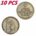 HIGH QUALITY KNIGHT CHALLENGE COIN: This coins is meant to serve as reminder that our strength comes from the Lord, and that he is stronger than any trial or tribulation that lies ahead of us. No challenge is too great for those that rely on the Almighty! CHRISTIAN TASK AHEAD COIN WITH BIBLE VERSE, PACK OF 10: Front: a kneeling knight with sword, with text "Greater is he who is in you than he who is in the world. 1 John 4:4". Back: a shield with cross, with text "I can do all things through Christ who gives me strength. Philippians 4:13"| GOLD PLATED COLLECTIBLE KEEPSAKE: These beautiful challenge coins are a perfect tool to serve as a subtle reminder of faith. Great to keep in a pocket, purse, or backpack to carry with you wherever you go, or put it on display on any table or desktop. HIGH-DETAIL PASS ALONG TOKEN: Carefully and exquisitely designed, this Bible verse challenge coin makes the perfect gift or token of encouragement to pass out to friends or family. Make someone's day with a simple, kind gesture and a small gift. Also a great tool for bulk teaching aids and object lessons at church, school, small groups, or youth groups. PERSONAL POCKET TOKEN OR ENCOURAGING GIFT: These Christian challenge coins come in gift-ready packaging. Makes for the perfect present as a token of gratitude, appreciation, or encouragement. Remind someone that they are not alone, and that there is a God who loves them.