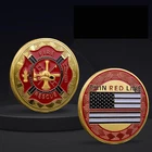 10PCS Fire Rescue US Commemorative Thin Red Line Flag Challenge Coin Fireman