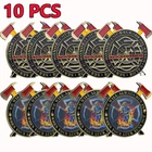 Features: Brand new and high quality. High precision manufacturing and top quality. Each coin is 1.57 inches (40mm) and 0.3 centimeters thick, comes in a fit to coin packaging for long-term protection. Specification: Material:Metal Diameter: 65x57mm Thickness: 3mm Color: as show as picture Note: May be damaged during transportation, be careful before placing the order If you mind it, please understand. Please allow 1-3cm (0.4-1.18") difference due to manual measurement and slight color variation for different display setting. Package Includes: 10 x Coin