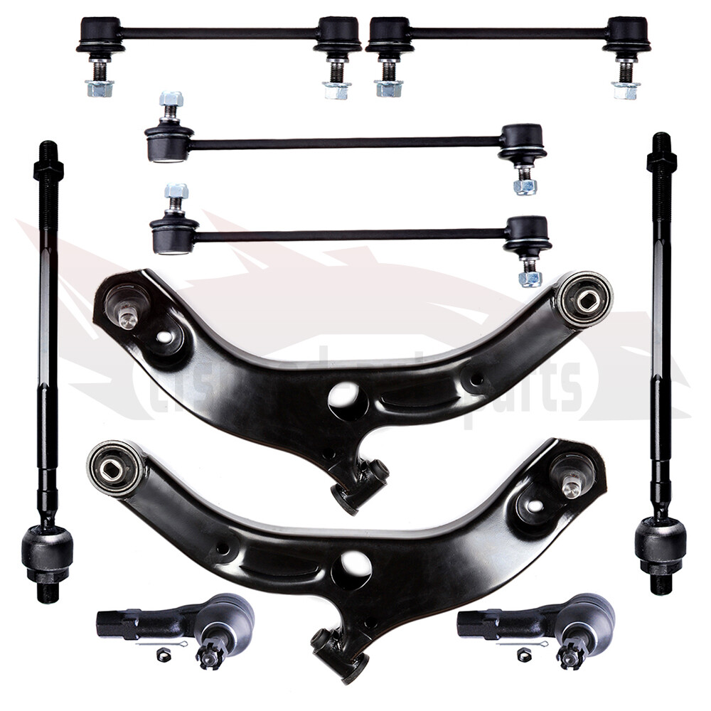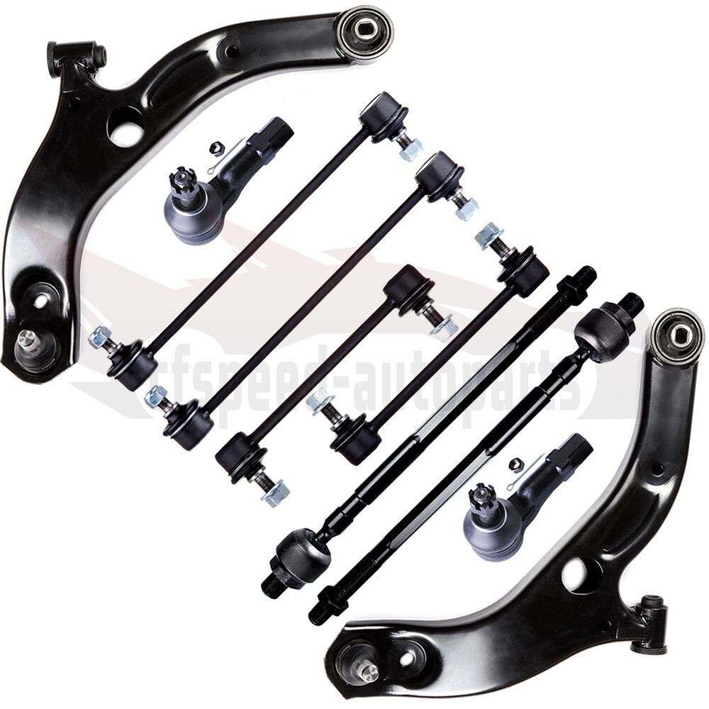 1.Fit For: 2001 - 2003 MAZDA PROTEGE To Vin # 165337 Excluding MAZDASPEED & MP3 2.Package Includes: 1x Front Left Lower Control Arm + Ball Joint - K620071 1x Front Right Lower Control Arm + Ball Joint - K620072 2x Front Stabilizer / Sway Bar End Links - K80258 2x Rear Stabilizer / Sway Bar End Links - K80868 2x Front Outer Tie Rod Ends - ES3197 2x Front Inner Tie Rod Ends - EV435 3.Note Although some parts have grease fittings, other parts are factory sealed, but do not affect the fit and quality of the parts. Cfspeed-autoparts 10PCS Front Control Arms Sway Bars Tie Rod Ends For 2001 -2003 Mazda Protege 1.Fit For: 2001 - 2003 MAZDA PROTEGE To Vin # 165337 Excluding MAZDASPEED & MP3 2.Package Includes: 1x Front Left Lower Control Arm + Ball Joint - K620071 1x Front Right Lower Control Arm + Ball Joint - K620072 2x Front Stabilizer / Sway Bar End Links - K80258 2x Rear Stabilizer / Sway Bar End Links - K80868 2x Front Outer Tie Rod Ends - ES3197 2x Front Inner Tie Rod Ends - EV435 3.Note Although some parts have grease fittings, other parts are factory sealed, but do not affect the fit and quality of the parts. 10 Year Warranty Please check above compatibility list to make sure it fits your vehicle. Ball Joint Ball joints may be grouped into two classifications, load carrying and non-load carrying. Ball joints may be manufactured with forged, stamped, cold-formed, or screw-machined housings. The coil spring is seated on the control arm to which the load-carrying ball joint is attached. For example, when the coil spring is mounted between the lower control arm and the chassis, the lower ball joint is a load-carrying joint. In a torsion bar suspension, the load-carrying ball joint is mounted on the control arm to which the torsion bar is attached. A load-carrying ball joint supports the vehicle weight. Tie-Rod End Replacement Guideline: If you feel a bump in the steering when driving over road bumps or curbs, this might be due to worn tie rod ends or inner tie rods. Clicking noises during sudden steering movements can also be symptoms of a defective tie rod. In order to determine the exact cause and replace the defective tie rod, the car must be elevated with a vehicle lift in order to be examined more closely. This useful tip applies to the exchange of tie rod ends and inner tie rods, which together form the so-called tie rod. Picture(A) Note: Cleanliness is extremely important when working on the power steering. Incorrect work and contamination can lead to leakage and, in the worst case, to failure of the steering assistance. 1.Lift the vehicle and dismount the front axle wheels. 2.Spray the fastening nut of the tie rod end with rust remover and leave it on for a few minutes. Picture(B) 3.Dismount the front underride guard. Picture(C) 4.Loosen the fastening nut from the tie rod and remove it completely. 5.Remove the tie rod end from the steering knuckle using an appropriate ball joint separator. Picture(D) 6.Remove the clamp of the bellow on the steering gear. 7.Push the bellow towards the tie rod end. Picture(E) 8.Unscrew the inner tie rod from the rack. 9.Clean the sealing face of the bellow at the steering gear. Picture(F) 10.Clean the lug of the rubber contact surface of the ball joint in the steering knuckle. Note:Always use new self-locking nuts and bolts for a reliable repair. 11.Screw the new inner tie rod into the rack and tighten it with the tightening torque that has been specified by the vehicle manufacturer. Picture(G) 12.Mount the bellow and close the clamps with the appropriate special tool. Note:Incorrect mounting of the bellow can lead to corrosion of the rack: the steering gear starts leaking which can lead to a failure in the steering assistance. Picture(H) 13.Secure the ball joint in the steering knuckle and mount the nut. Please observe the tightening torque suggested by the vehicle manufacturer. Note:During mounting, the ball stud should not turn within the ball joint. This can cause damage inside the ball joint and can lead to early failure. Tip:Secure the ball stud against twisting with a suitable tool. Picture(I) 14.Mount the front underride guard. 15.Mount the front wheels and tighten them with the tightening torque recommended by the vehicle manufacturer. 16.Align the wheels and adjust them if necessary. Observe the vehicle manufacturer specifications. 17.Perform a test drive. Note:When performing the test drive, pay special attention to the handling while cornering and listen for possible noise emission. Sway Bar Stabilizer Link Replacement Guideline: While driving, the following signs may indicate a faulty sway bar stabilizer link: (1).Rattling and thumping noises on rough roads. (2).Imprecise vehicle handling. (3).Stronger inclination of the vehicle during cornering. If the sway bar stabilizer link is found to be defective, it should be replaced as described below. Picture(A) 1.Raise vehicle and remove front wheels. Tip:Always check both stabilizer links and replace them in pairs if necessary. 2.Spray fastening nuts of the stabilizer link with rust remover and let act for a few minutes. Picture(B) 3.Loosen the lower fastening nut of the stabilizer link at the stabilizer and remove. Tip:If the ball stud also starts to turn, hold it with a suitable tool. 4.Press stabilizer link out of torsion bar. Picture(C) 5.Loosen the upper fastening nut of the stabilizer link at the suspension strut and remove it. Tip:If the ball stud also starts to turn, hold it with a suitable tool. Picture(D) 6.Press stabilizer link at suspension strut out of bracket. Picture(E) 7.Insert new stabilizer link at suspension strut. Picture(F) 8.Tighten stabilizer link at suspension strut to the tightening torque specified by the vehicle manufacturer. Tip:Secure the ball stud against twisting with a suitable tool. Picture(G) 9.Insert new stabilizer link at stabilizer. 10.Tighten stabilizer link at stabilizer to the tightening torque specified by the vehicle manufacturer. Tip:Secure the ball st